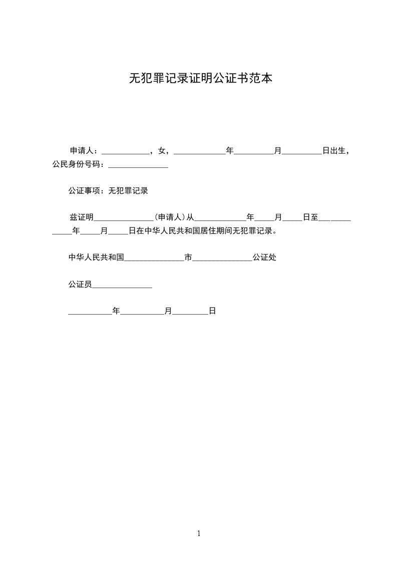 公证事项:无犯罪记录