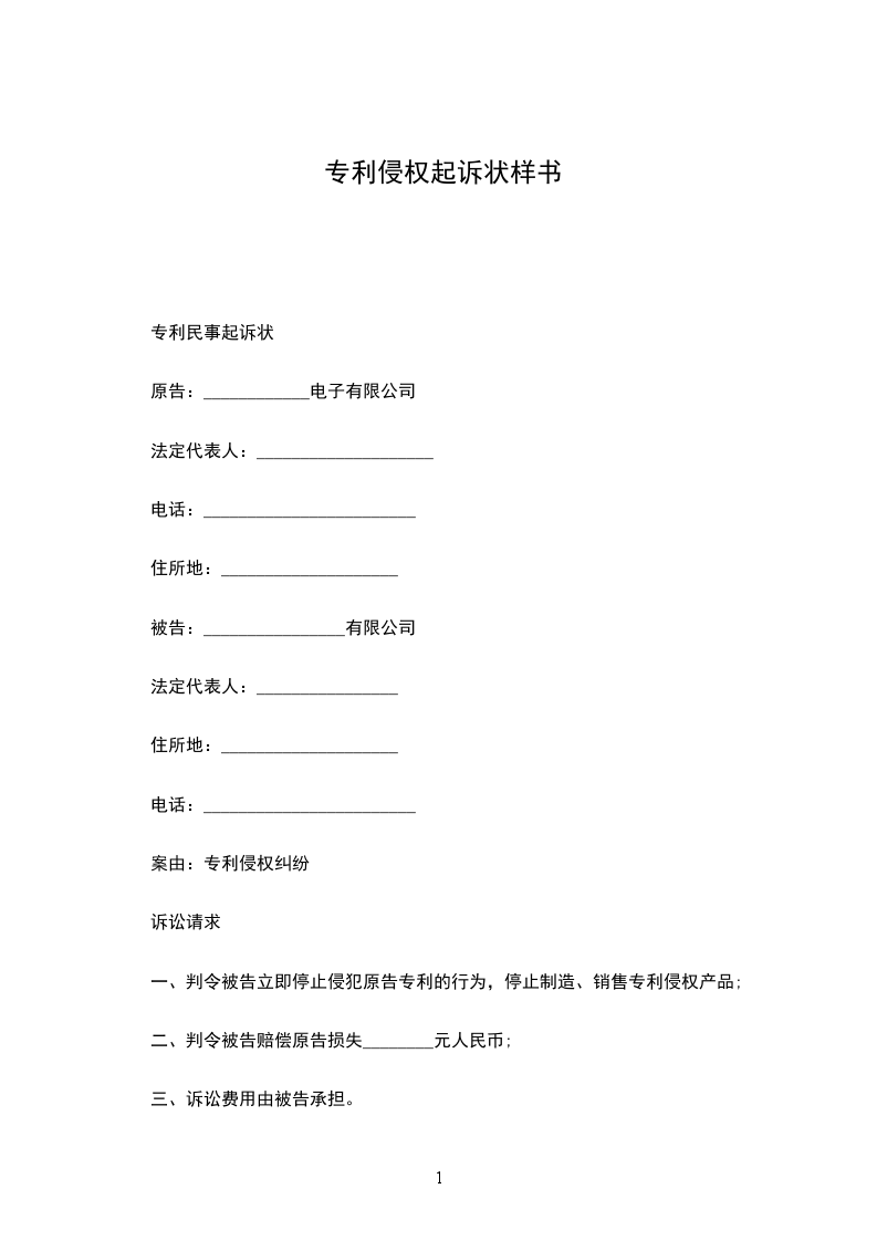 专利民事起诉状