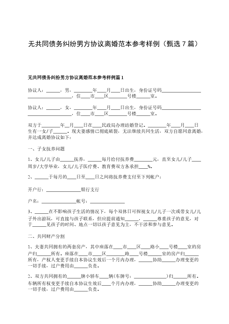 7.本协议一式三份,男女双方各持一份,婚姻登记机关存档一份。