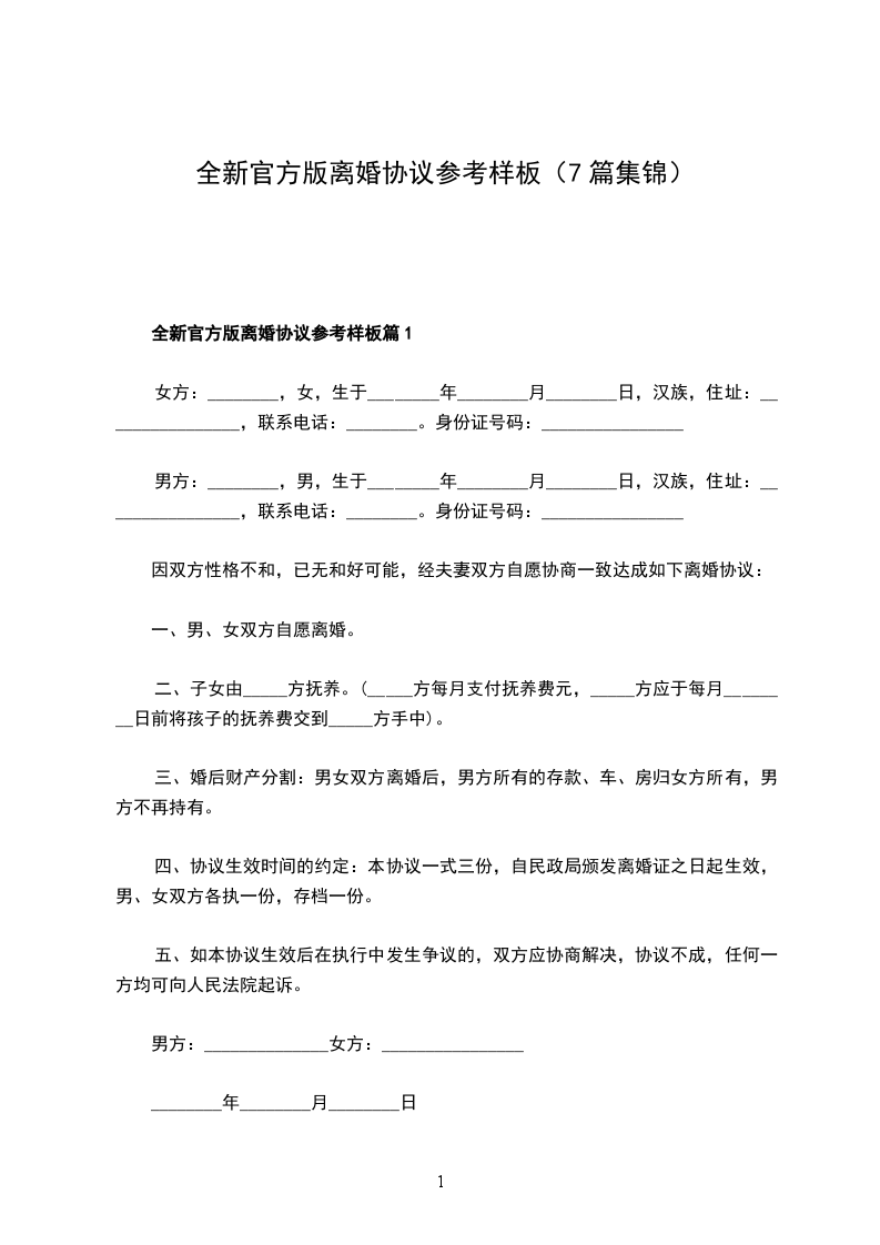 全新官方版协议离婚书样本篇7