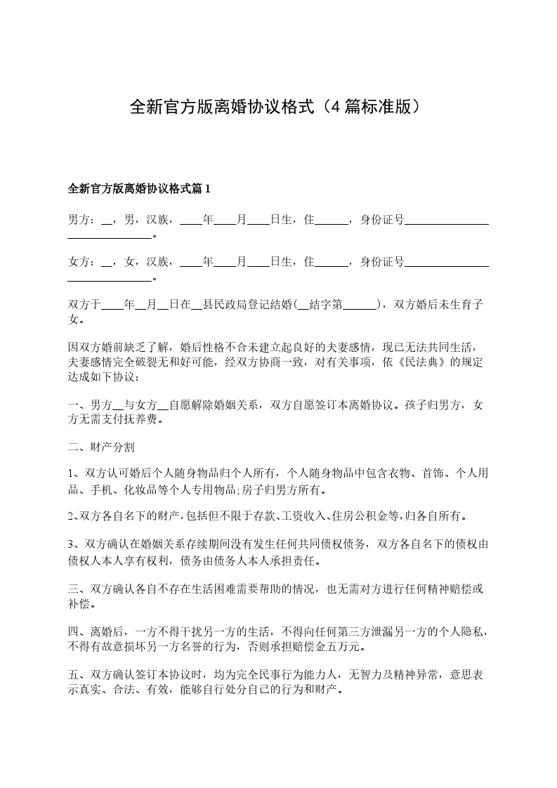 全新官方版离婚协议格式篇4