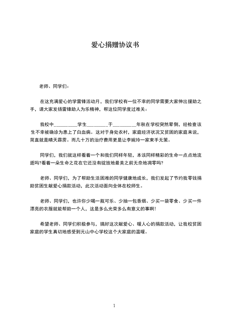 我校中__________学生_________于__________年秋在学校突然晕倒,经检查该生不幸被确诊为患上了白血病。这对于身处农村,家庭经济状况又贫困的家庭来说,简直就是晴天霹雳。而几十万的治疗费用更是让李婉玲一家束手无策。