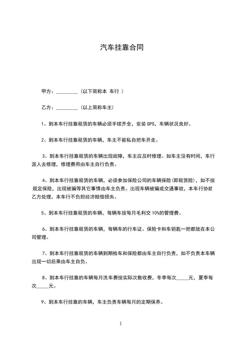 甲方:_________ (以下简称本 车行 )
