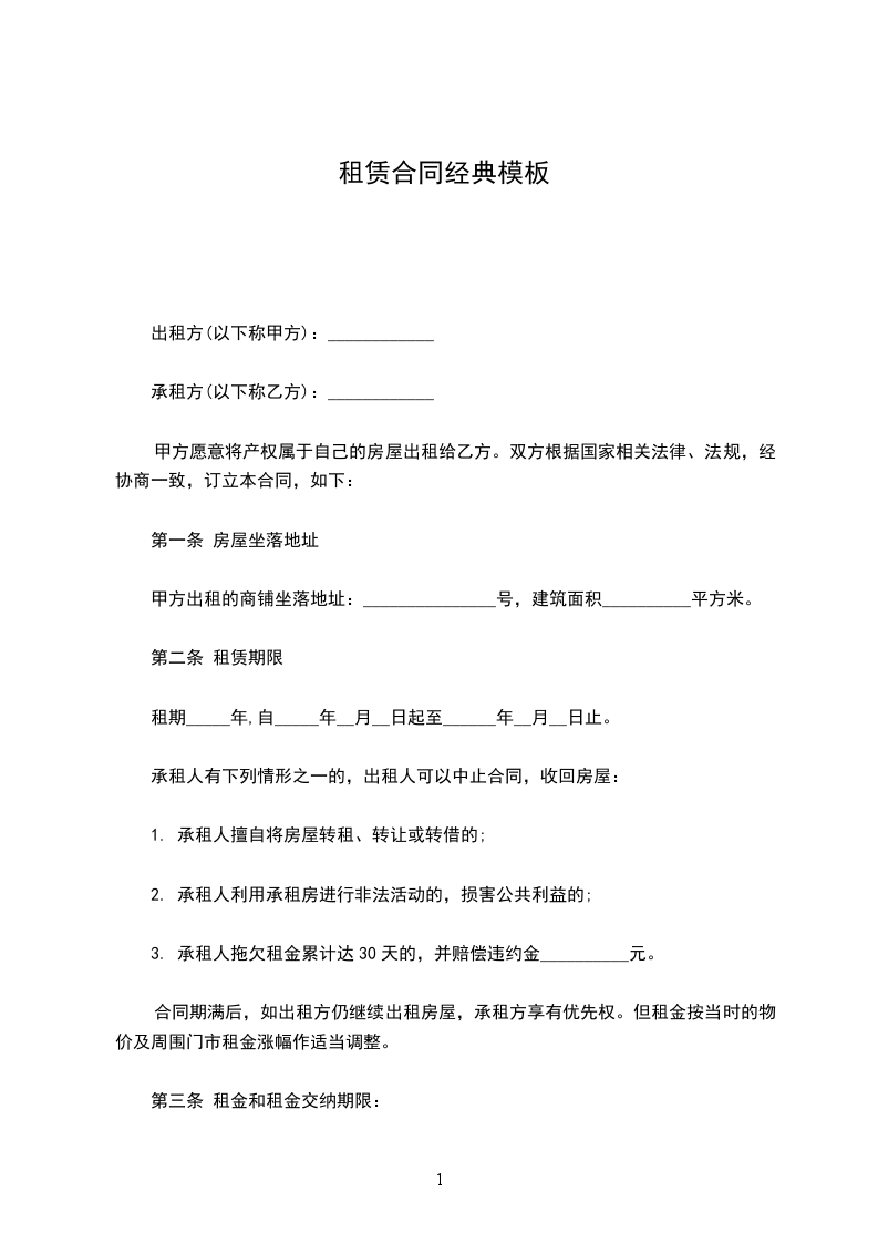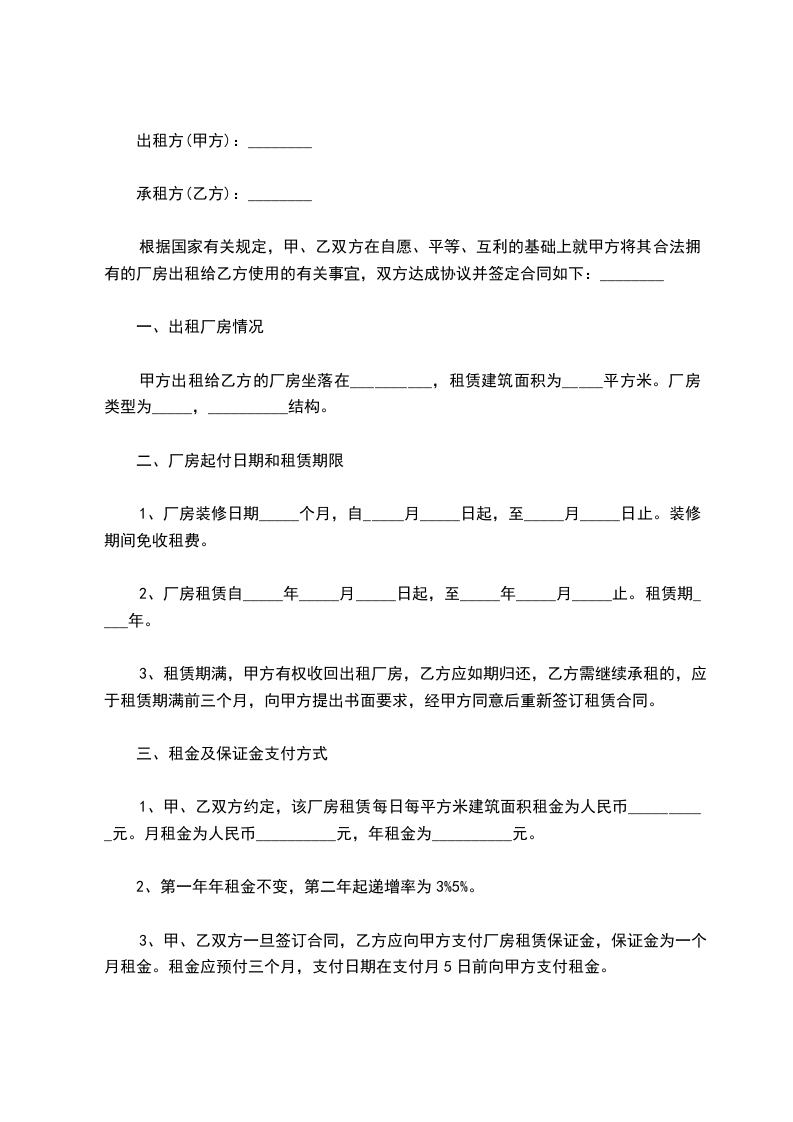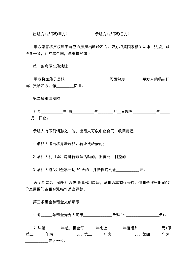 1、租赁期限:租赁期为自____年____月____日至____年____月____日止,在租赁期内,如因乙方原因提前终止租赁合同,乙方所付租金不予退还。