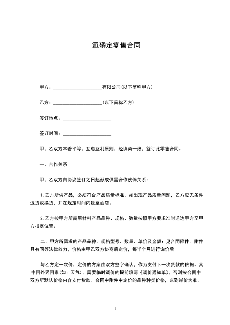 甲、乙双方本着平等、互惠互利原则,经协商一致,签订此零售合同。