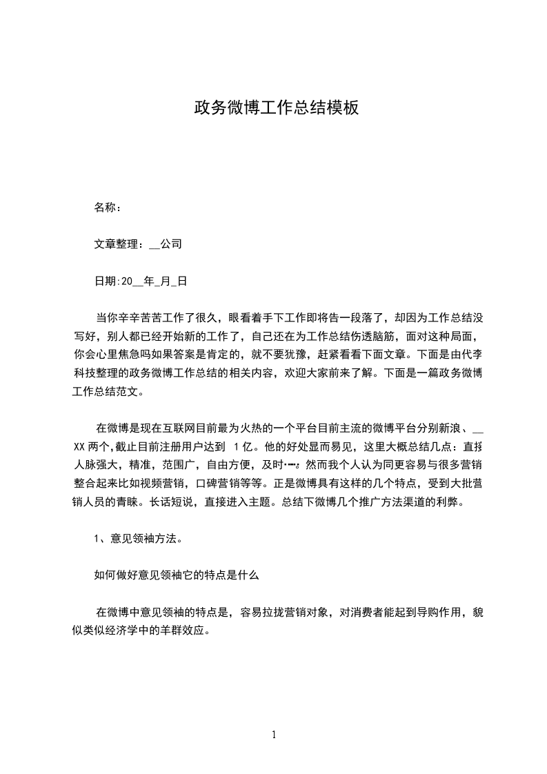当你辛辛苦苦工作了很久,眼看着手下工作即将告一段落了,却因为工作总结没写好,别人都已经开始新的工作了,自己还在为工作总结伤透脑筋,面对这种局面,你会心里焦急吗如果答案是肯定的,就不要犹豫,赶紧看看下面文章。下面是由代李科技整理的政务微博工作总结的相关内容,欢迎大家前来了解。下面是一篇政务微博工作总结范文。