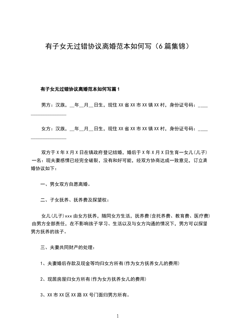 男方与女方于_____年_____月认识,于_____年___月___日在__________登记结婚,婚后于_____年___月___日生育一儿子/女儿,现夫妻感情破裂,已无和好可能,现经夫妻双方自愿协商达成一致意见,并达成如下协议: