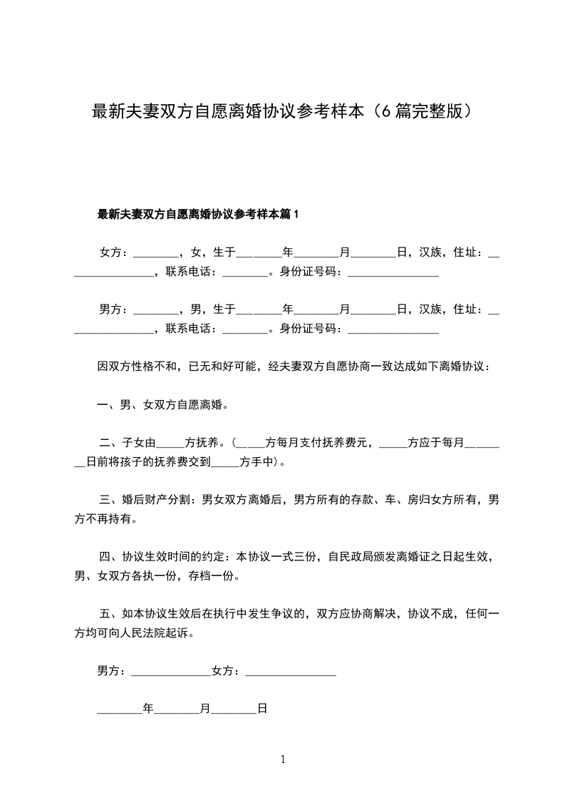 本协议书系双方真实意思表示,上述内容全部真实有效,一旦提供虚假情况,双方当事人自愿承担一切法律后果。本协议书一式____份,婚姻登记机关存档____份,双方各执____份,双方签字,并经婚姻登记机关办理离婚登记后生效。