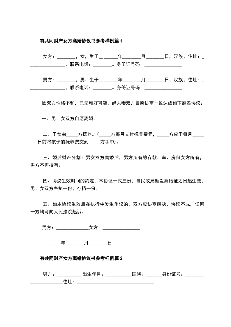 女方:________,女,生于________年________月________日,汉族,住址:________________,联系电话:________。身份证号码:________________