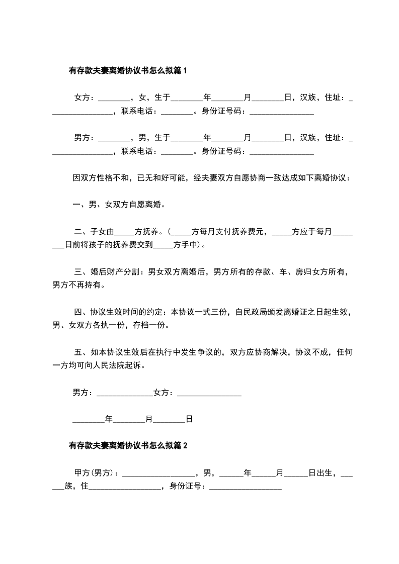 1、存款:双方共同存款____________万平分,双方各自名下的存款保持不变,归各自所有;