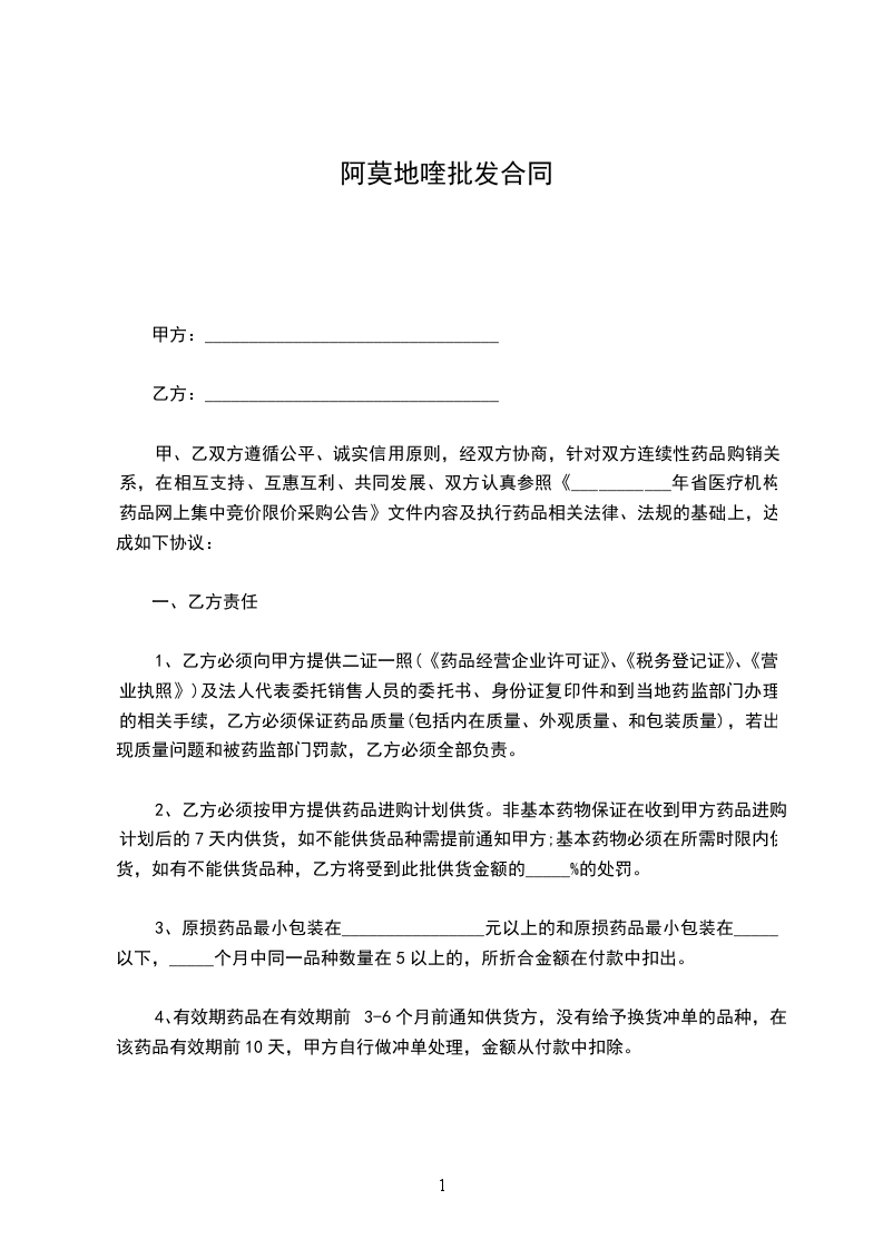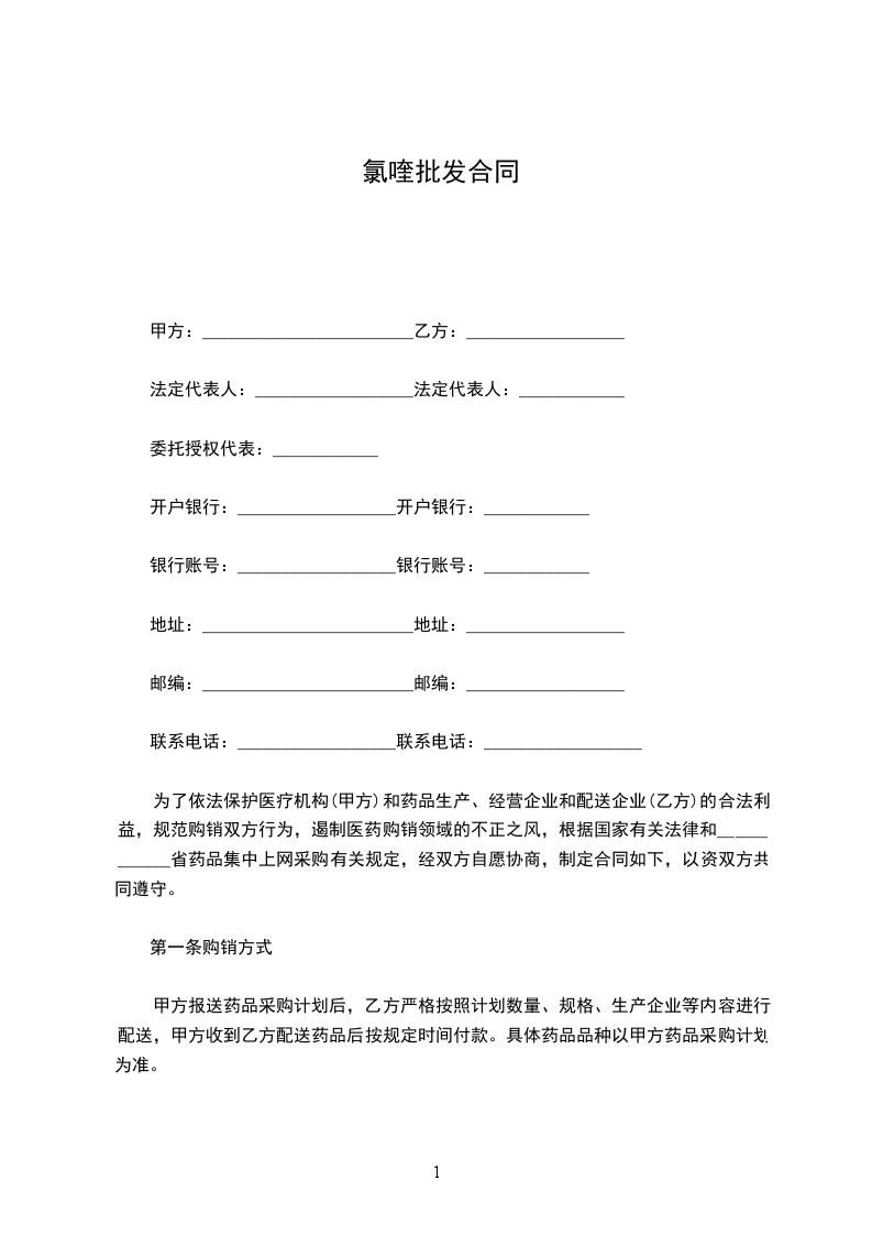 为了依法保护医疗机构(甲方)和药品生产、经营企业和配送企业(乙方)的合法利益,规范购销双方行为,遏制医药购销领域的不正之风,根据国家有关法律和____________省药品集中上网采购有关规定,经双方自愿协商,制定合同如下,以资双方共同遵守。