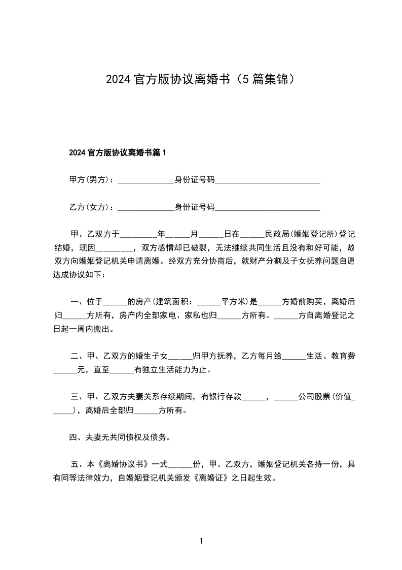 2024官方版协议离婚书如何写篇5