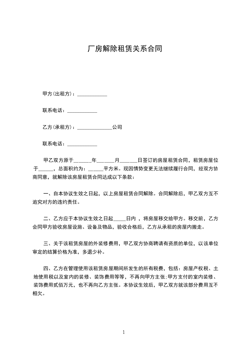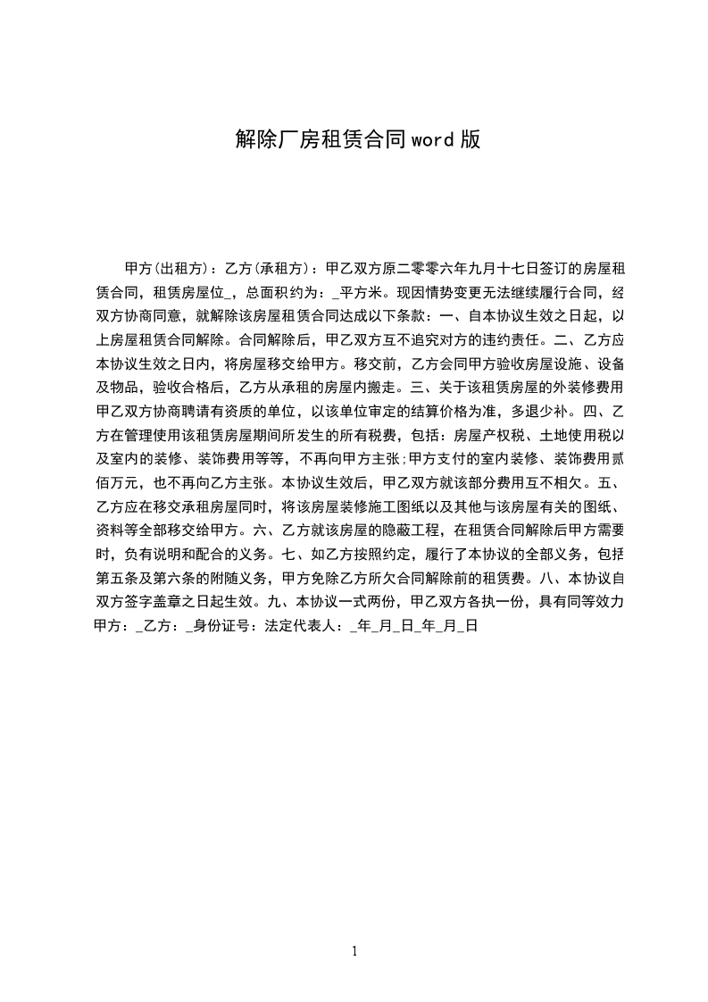 1、厂房租赁期间,如甲方提前终止合同而违约,应赔偿乙方三个月租金。租赁期间,如乙方提前退租而违约,应赔偿甲方三个月租金。