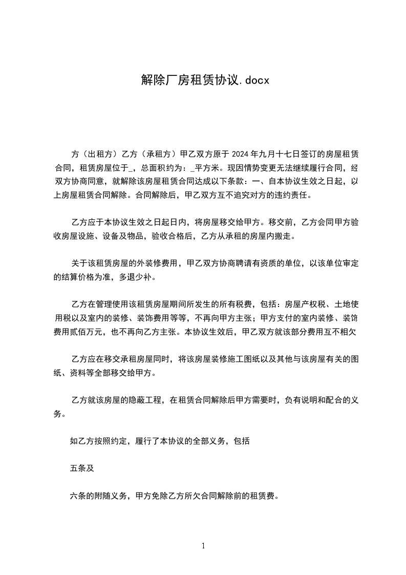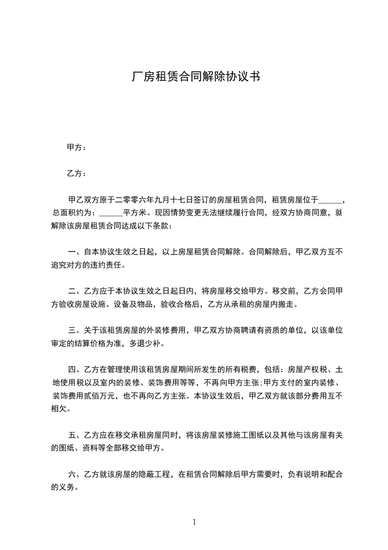 3、厂房租赁期间,厂房因不可抗拒的原因和市政动迁造成本合同无法履行,双方互不承担责任。