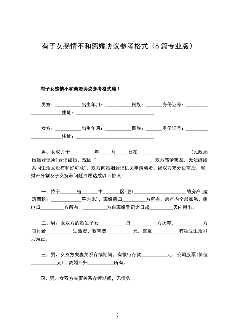 有子女感情不和离婚协议参考格式篇1