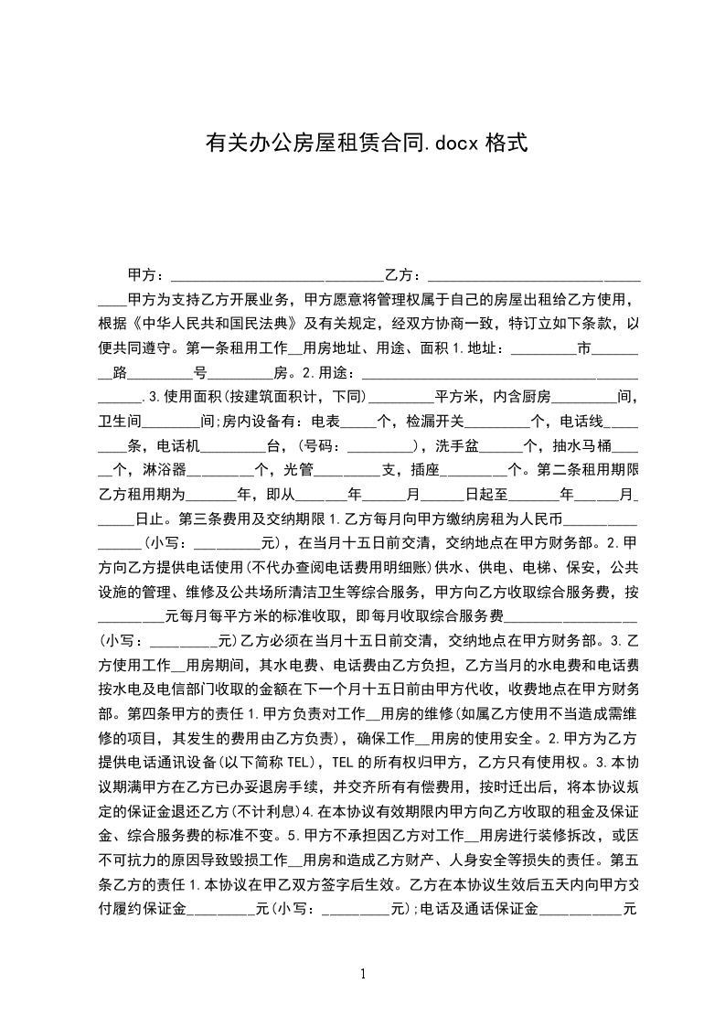 1. 甲方保证房屋符合质量标准,能用于正常办公,否则乙方有权解除合同,甲方应赔偿乙方损失。
