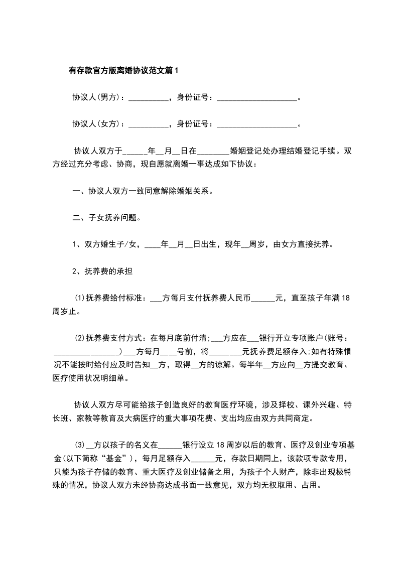 2、双方婚后的共同存款人民币____万元,双方同意归__方所有。