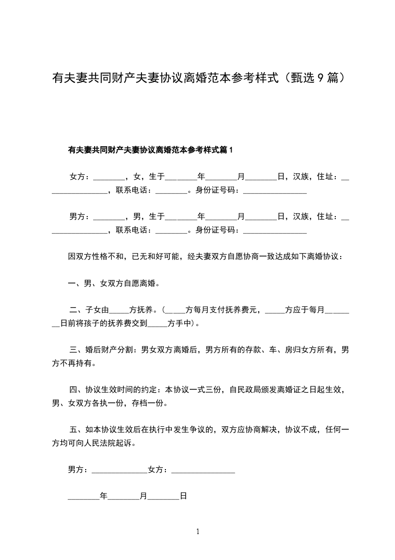 有财产夫妻离婚协议如何写篇9