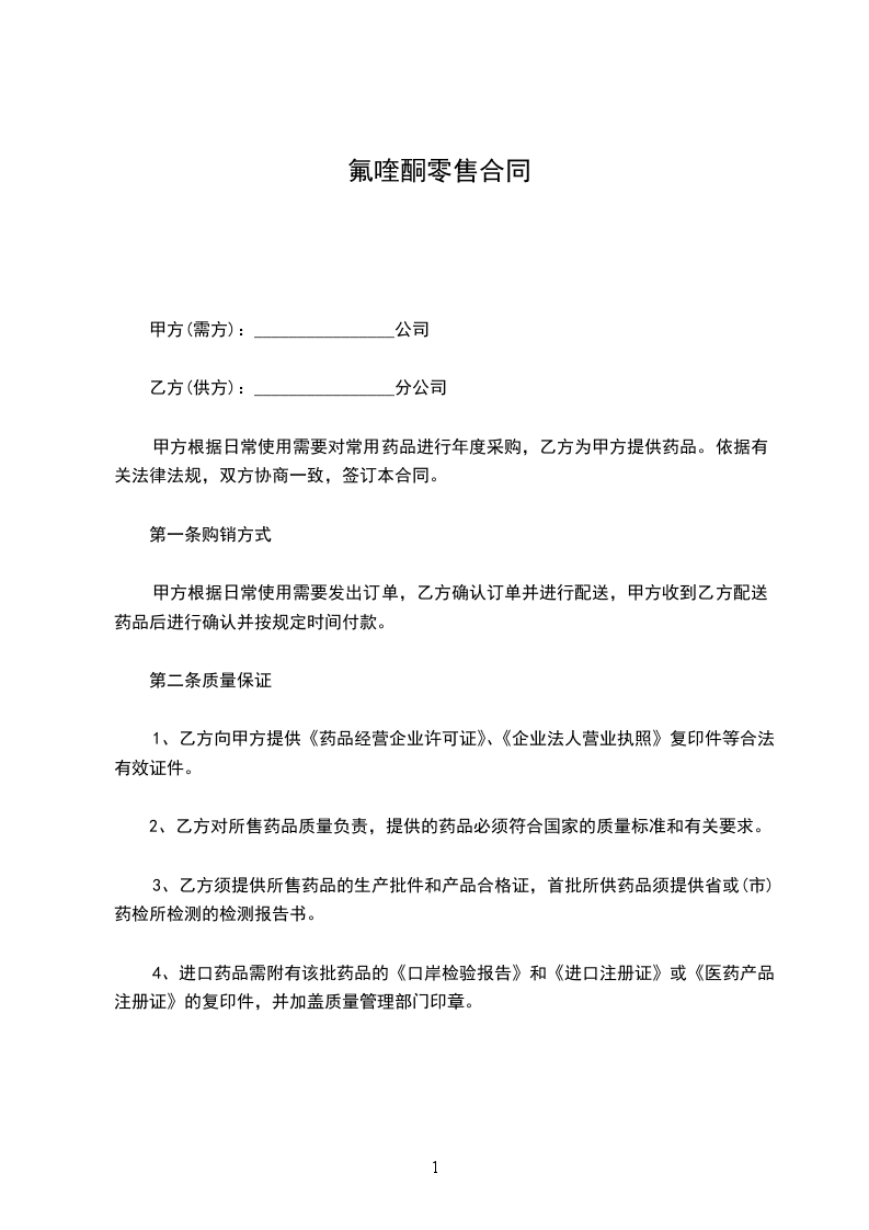 2、乙方对所售药品质量负责,提供的药品必须符合国家的质量标准和有关要求。