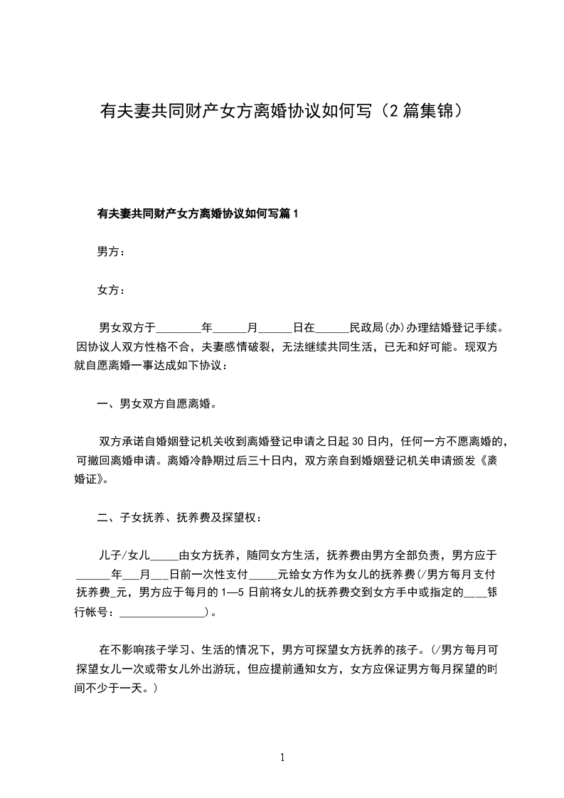 ⑵房屋:夫妻共同所有的位于XXX的房地产所有权归女方所有,房地产权证的业主姓名变更的手续自离婚后一个月内办理,男方必须协助女方办理变更的一切手续,过户费用由女方负责。