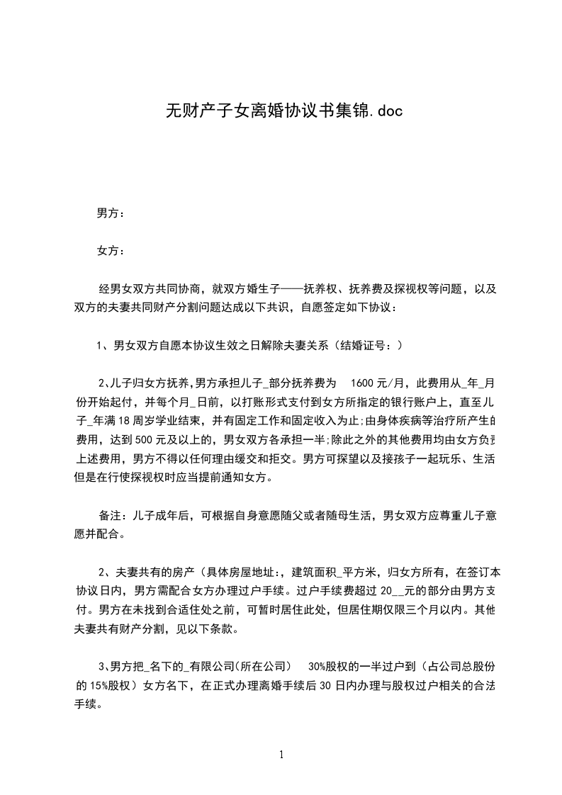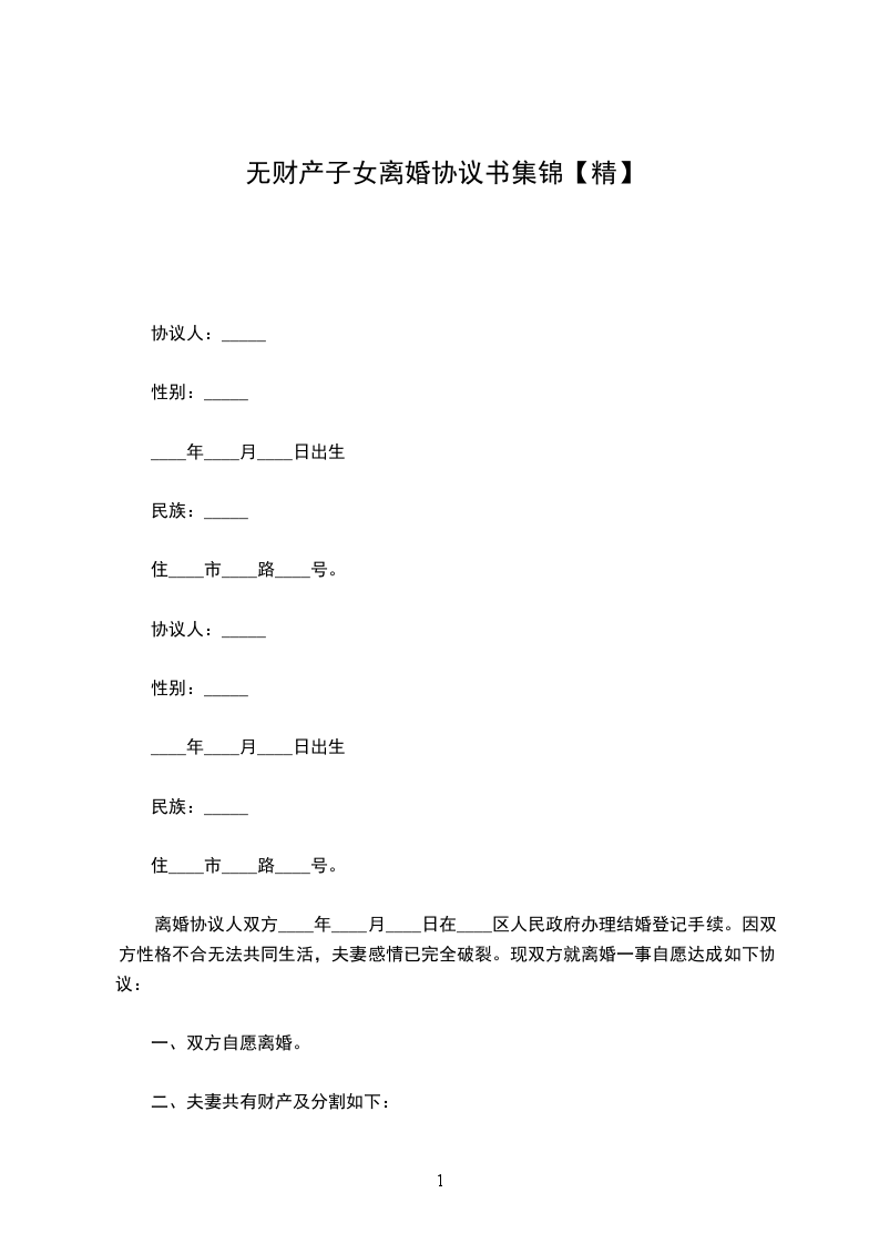 因_致使夫妻感情确已破裂,已无和好可能,现经夫妻双方自愿协商达成一致意见,订立离婚协议如下: