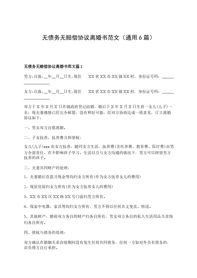1、甲乙双方确认在婚姻关系存续期间没有发生共同债务。