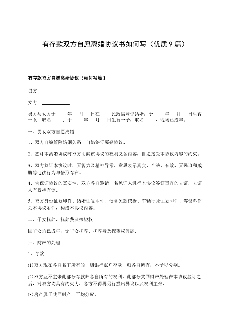 有存款双方自愿离婚协议书如何写篇9