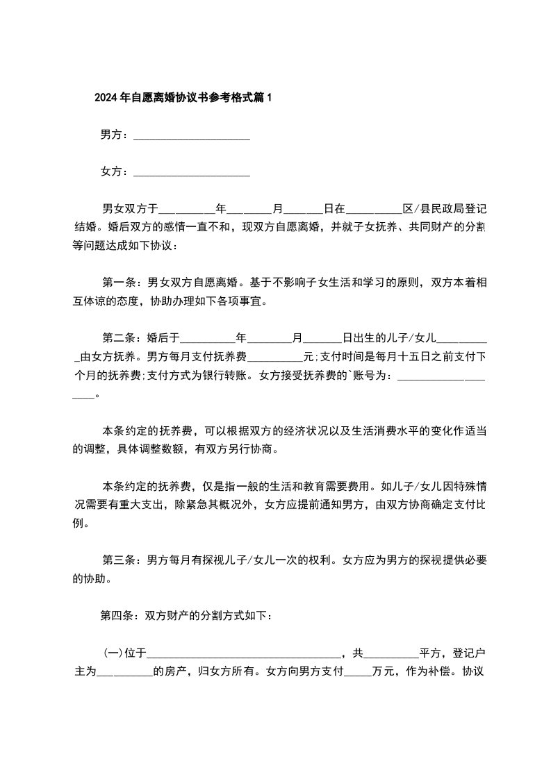 乙方:(男方):_______________,男,汉族,生于_____年__月__日,住________________________________
