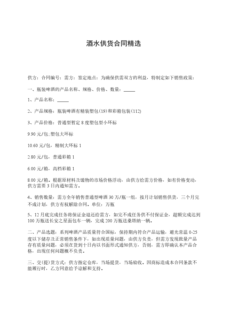 1、双方本着互利共赢的原则共同遵守和维系本合同的有效执行,不得违约。如一方违约须赔偿另一方的相应损失,如因提供乙方的红酒厂商造成不可抗力的市场断货,乙方不承担任何责任。