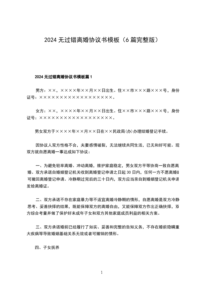 甲方(男方):__________________,男,______年______月______日出生,______族,住______市______路______,身份证号:__________________