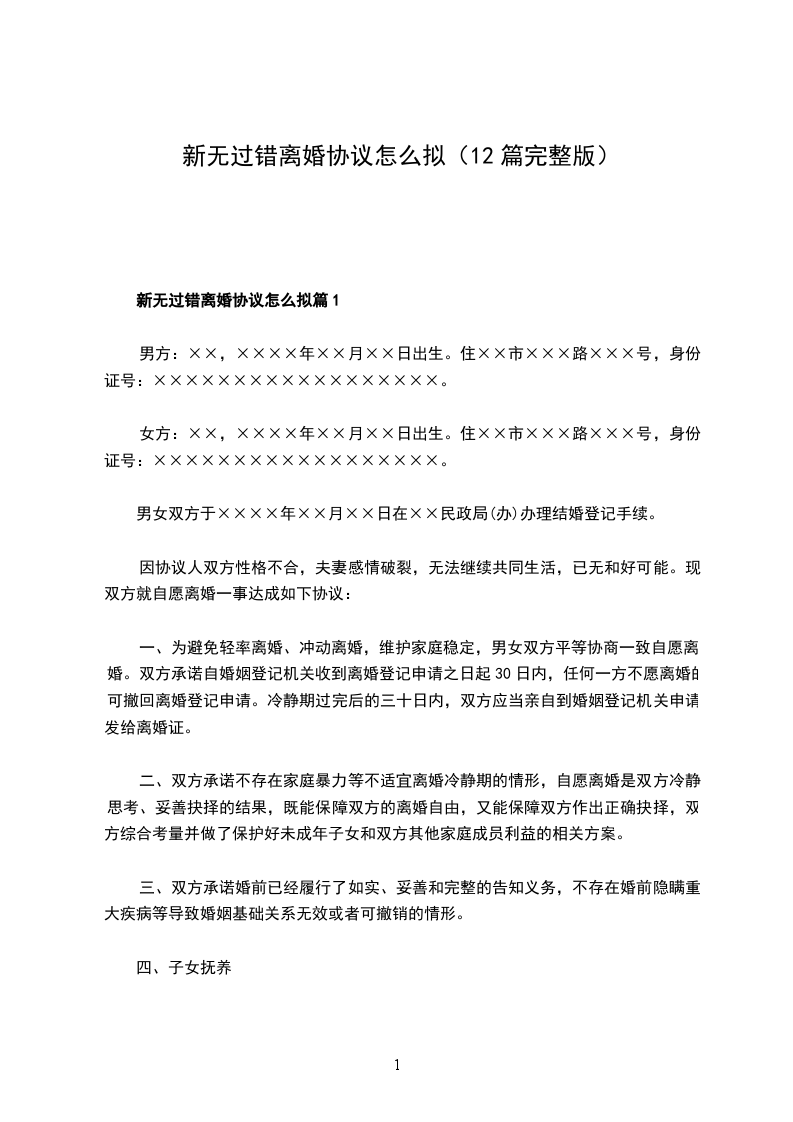 有房屋无过错离婚协议怎么拟篇2