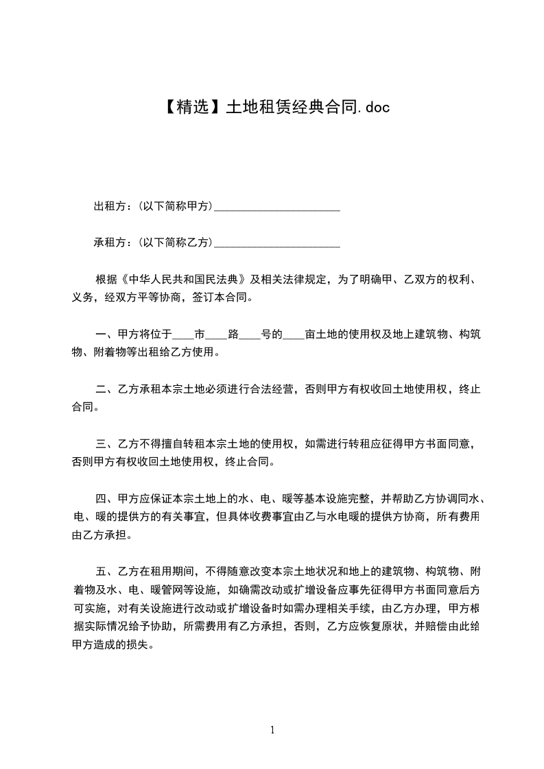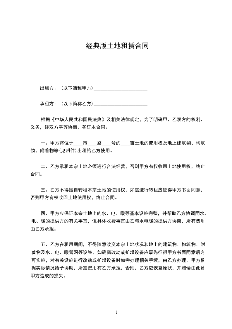 一、甲方将位于____市____路____号的____亩土地的使用权及地上建筑物、构筑物、附着物等(见附件)出租给乙方使用。