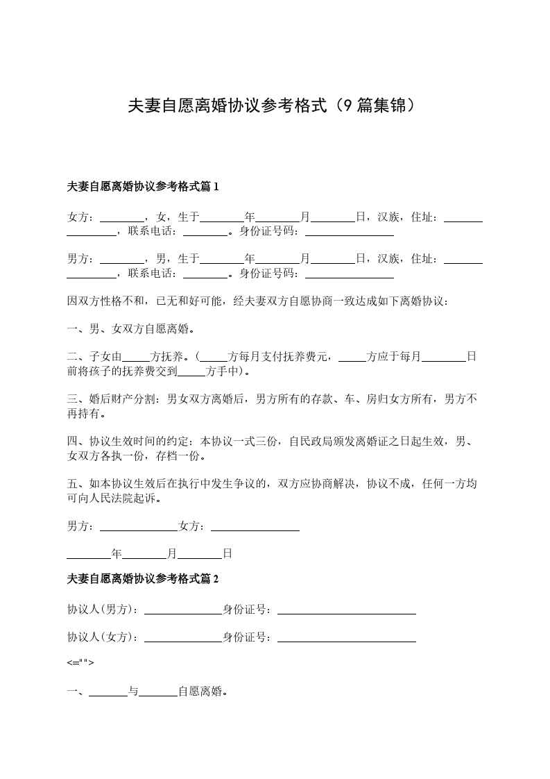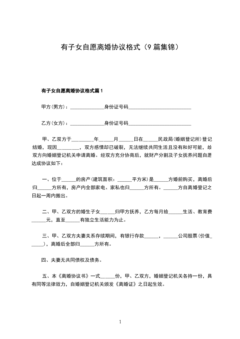 有房自愿协议离婚范本格式篇9