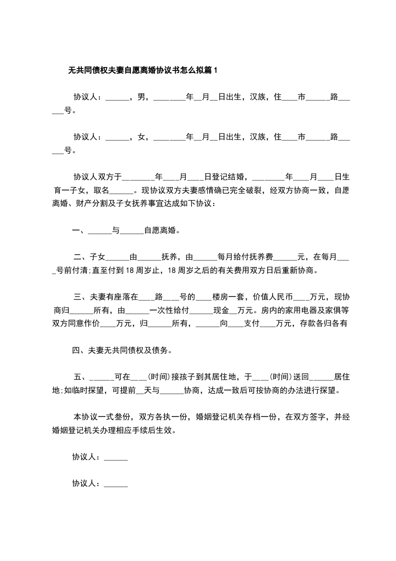 无共同的债务夫妻离婚协议书怎么拟篇2