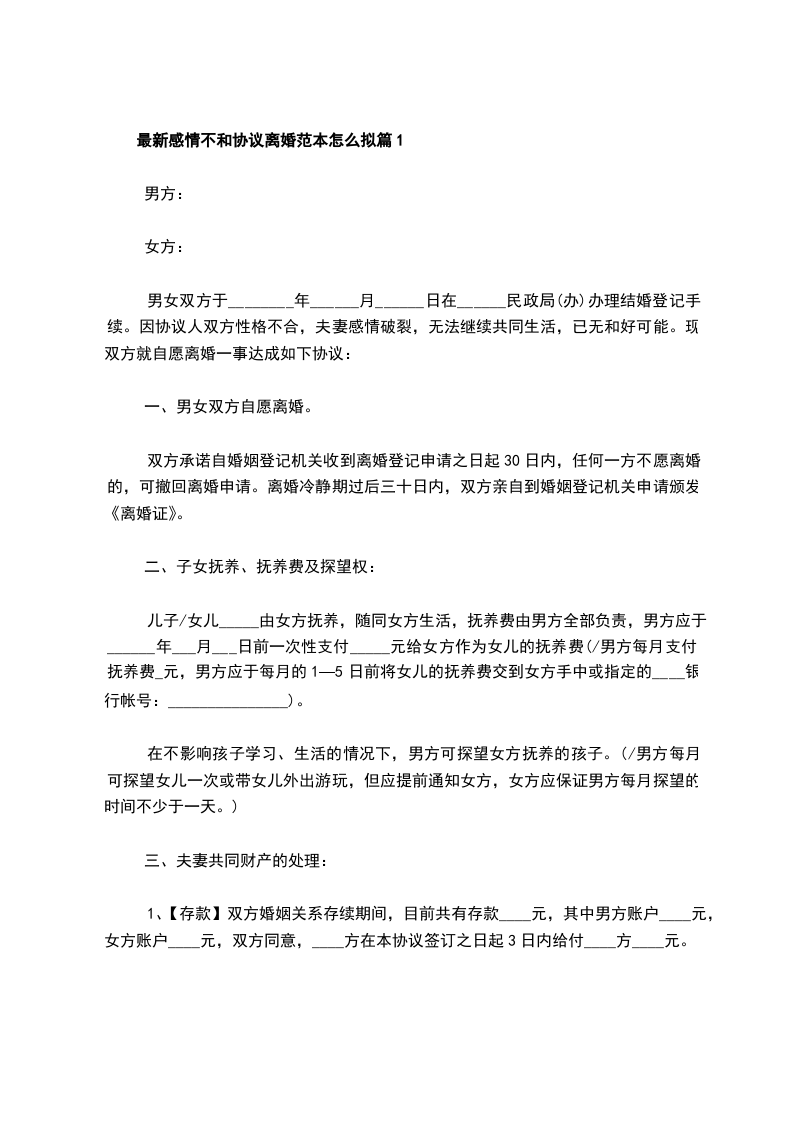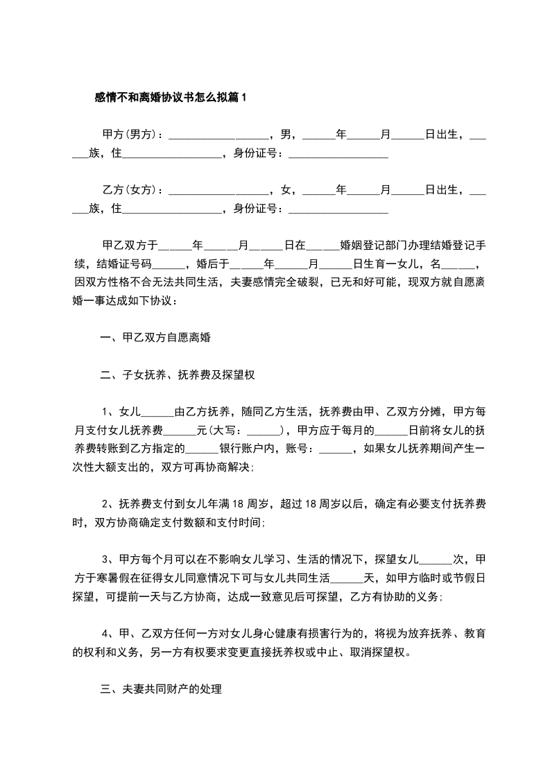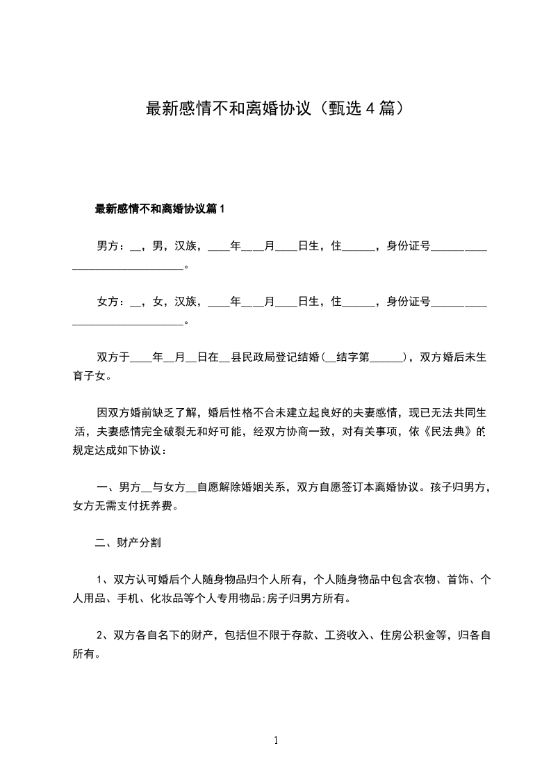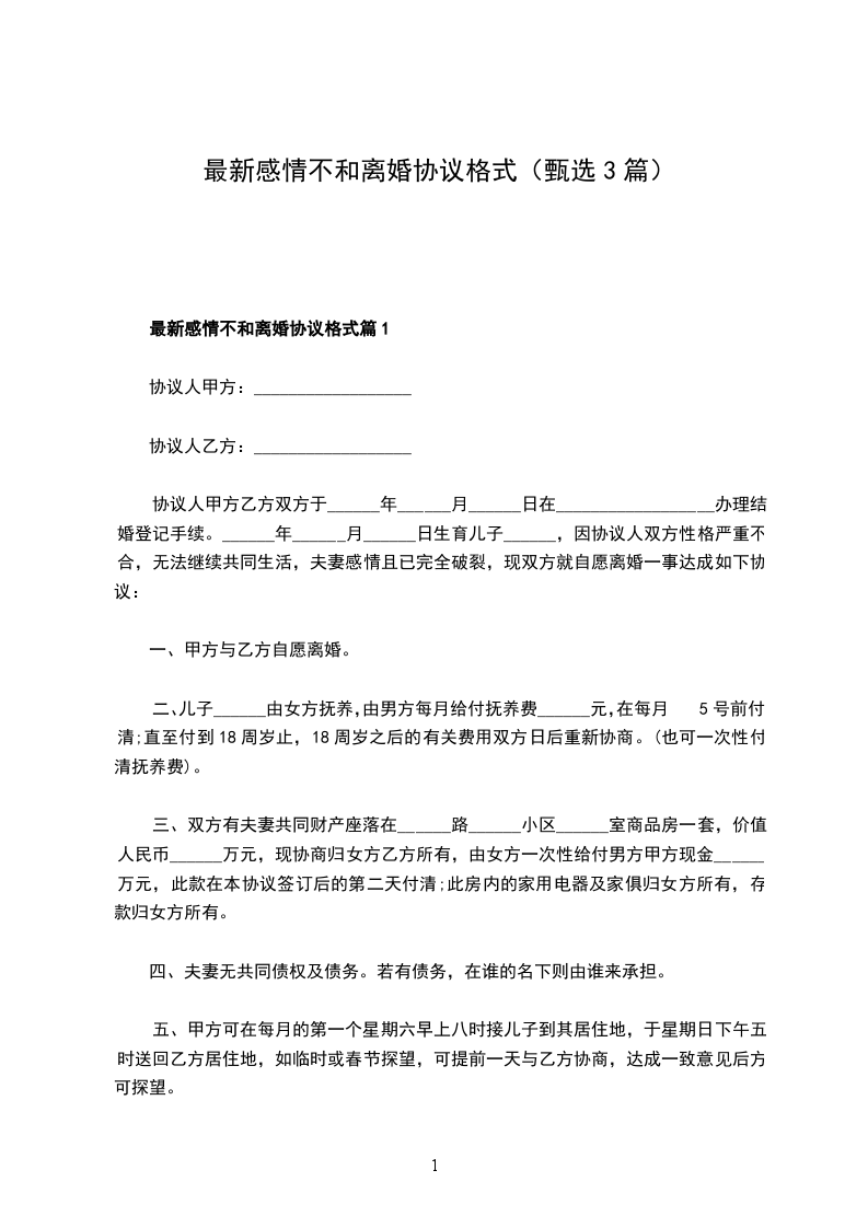 最新感情不和离婚协议格式篇1