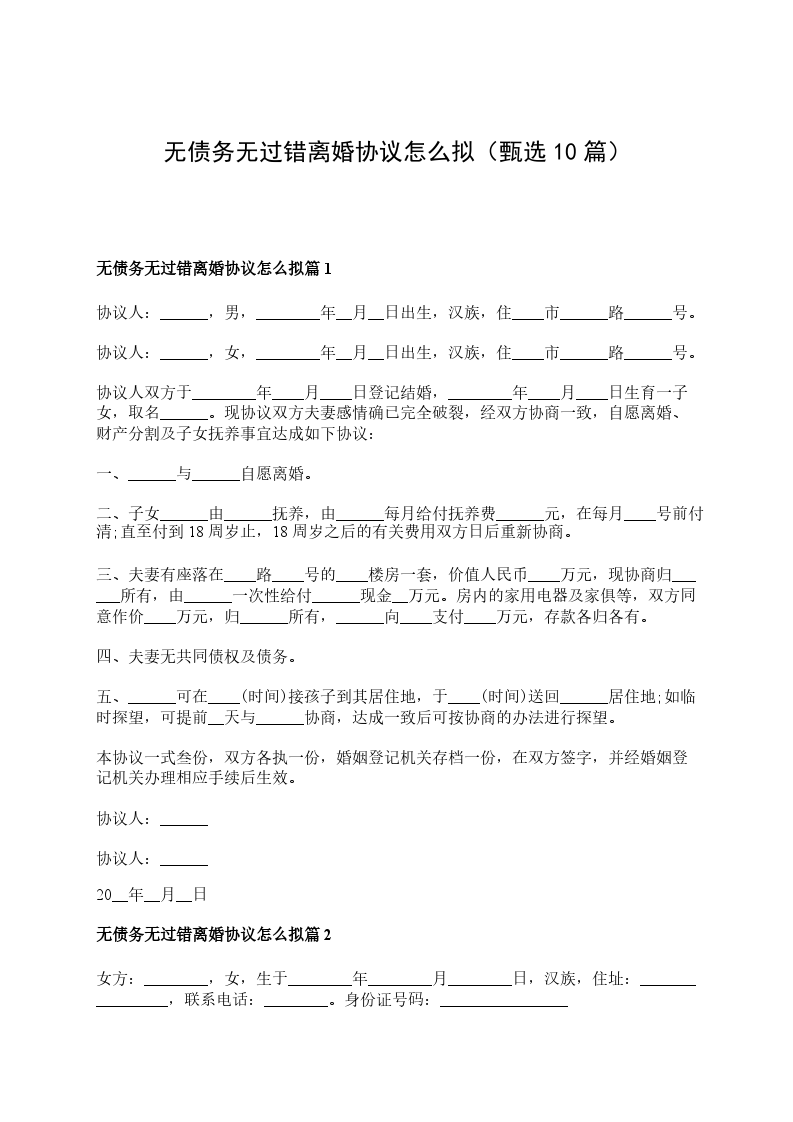 无债务官方版协议离婚范本怎么拟篇10