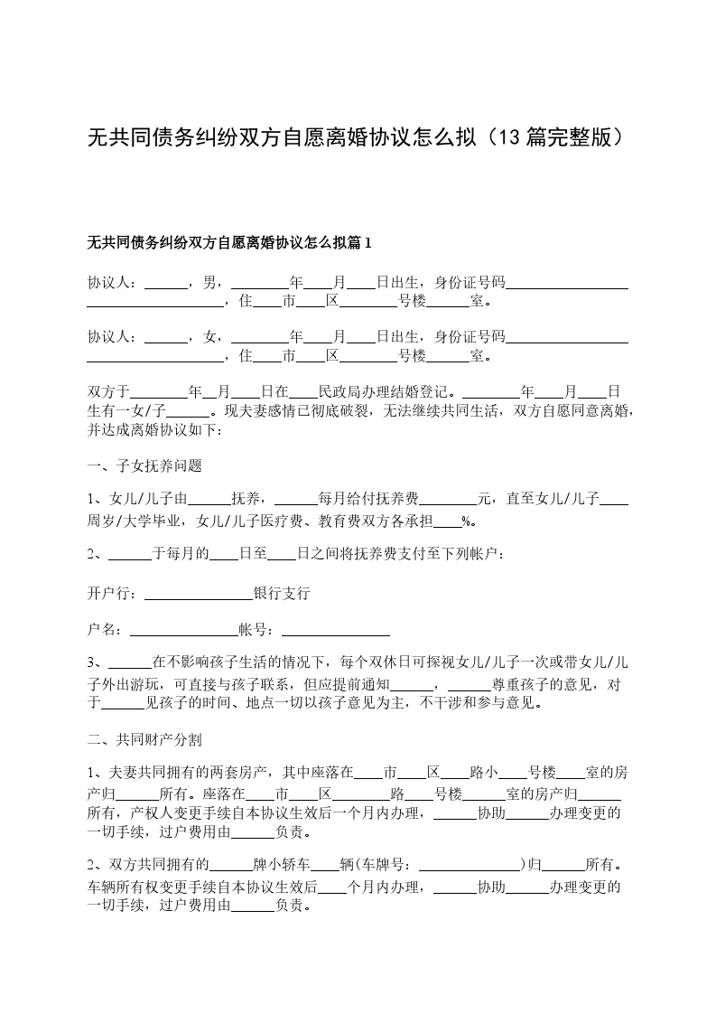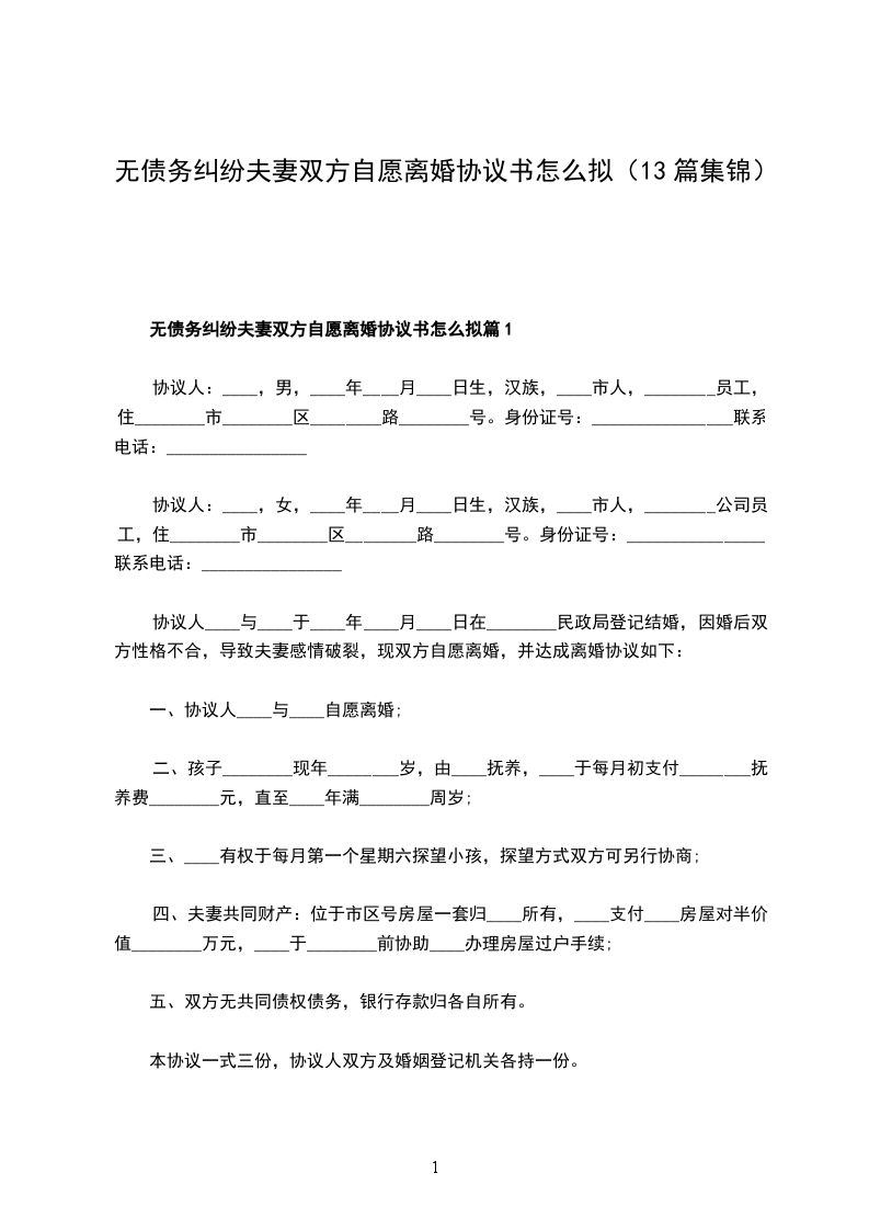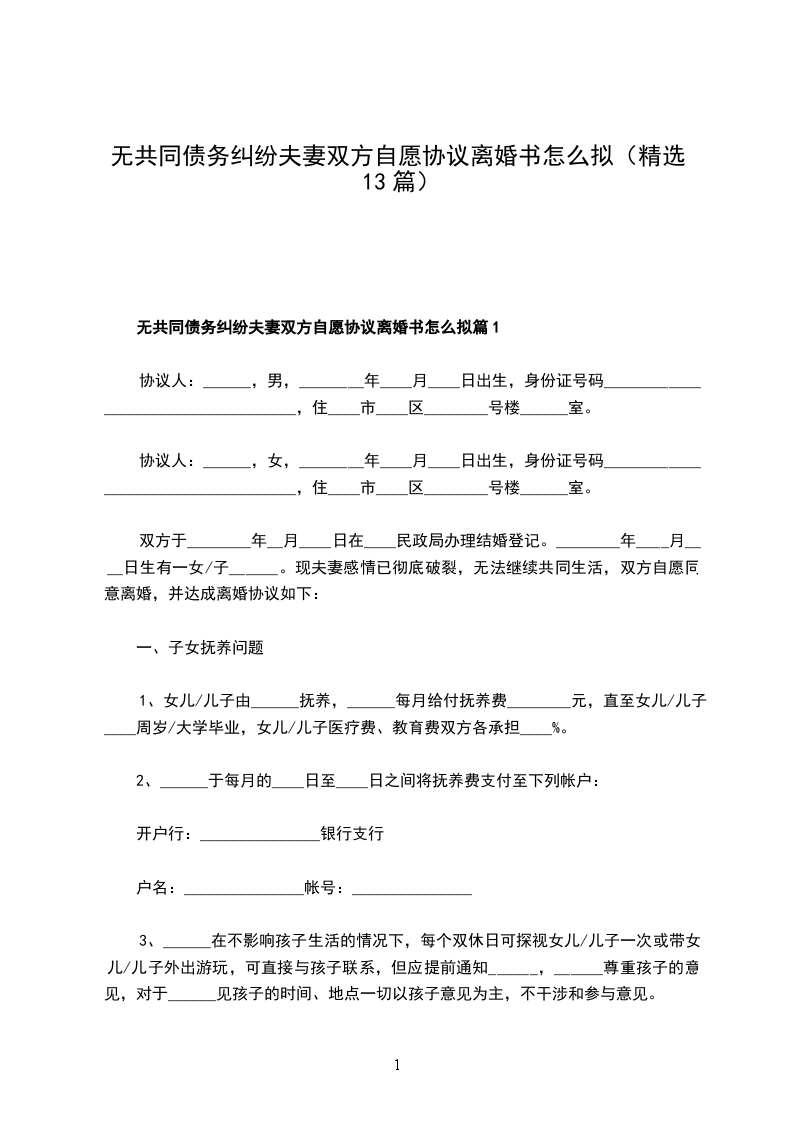 无债务纠纷夫妻双方自愿离婚协议书怎么拟篇13