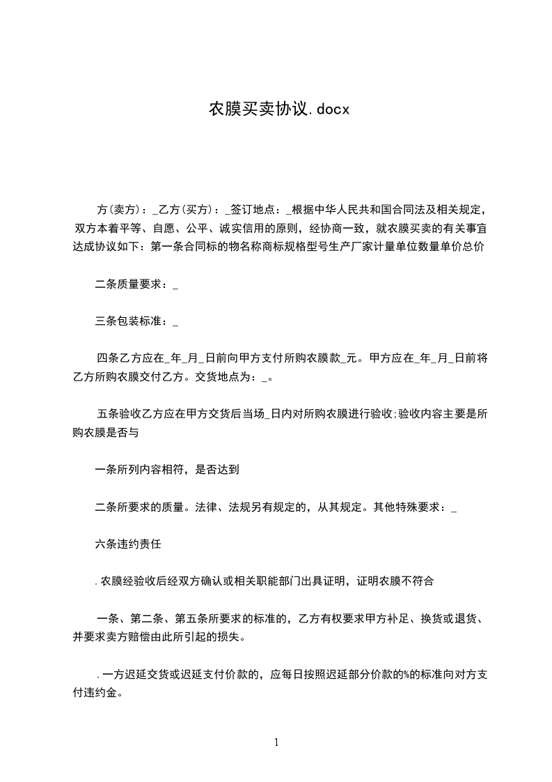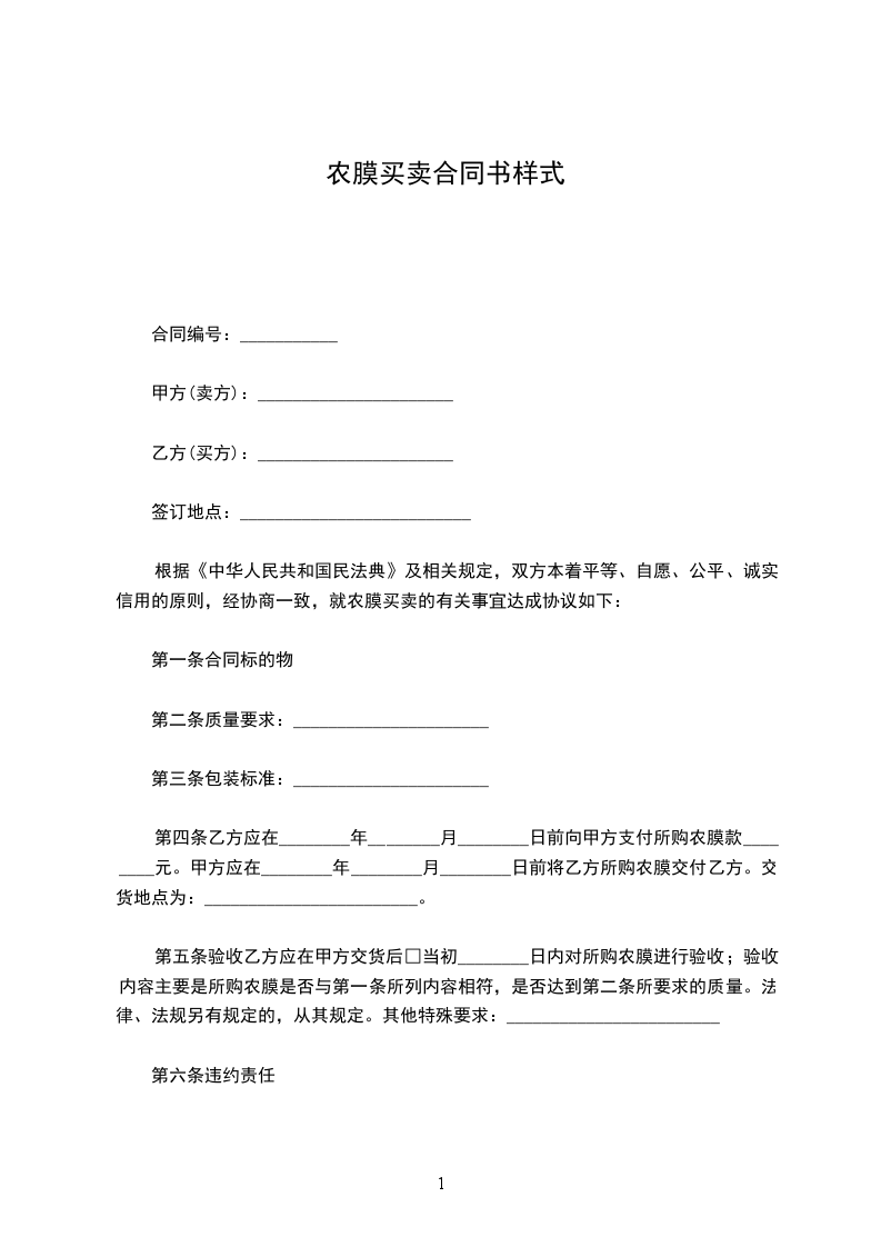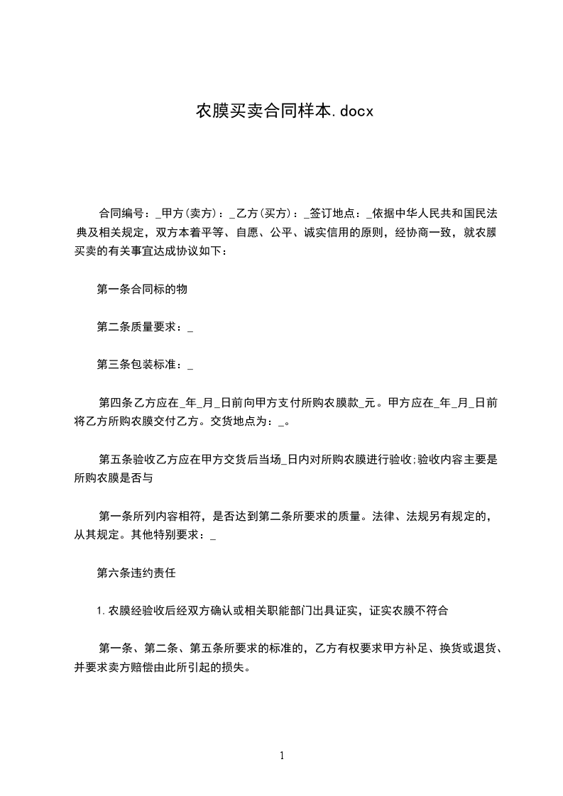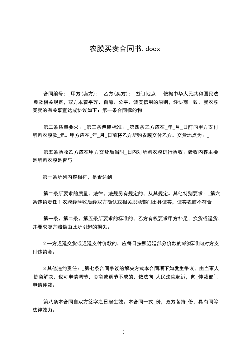 根据《中华人民共和国民法典》及相关规定,双方本着平等、自愿、公平、诚实信用的原则,经协商一致,就农膜买卖的有关事宜达成协议如下: