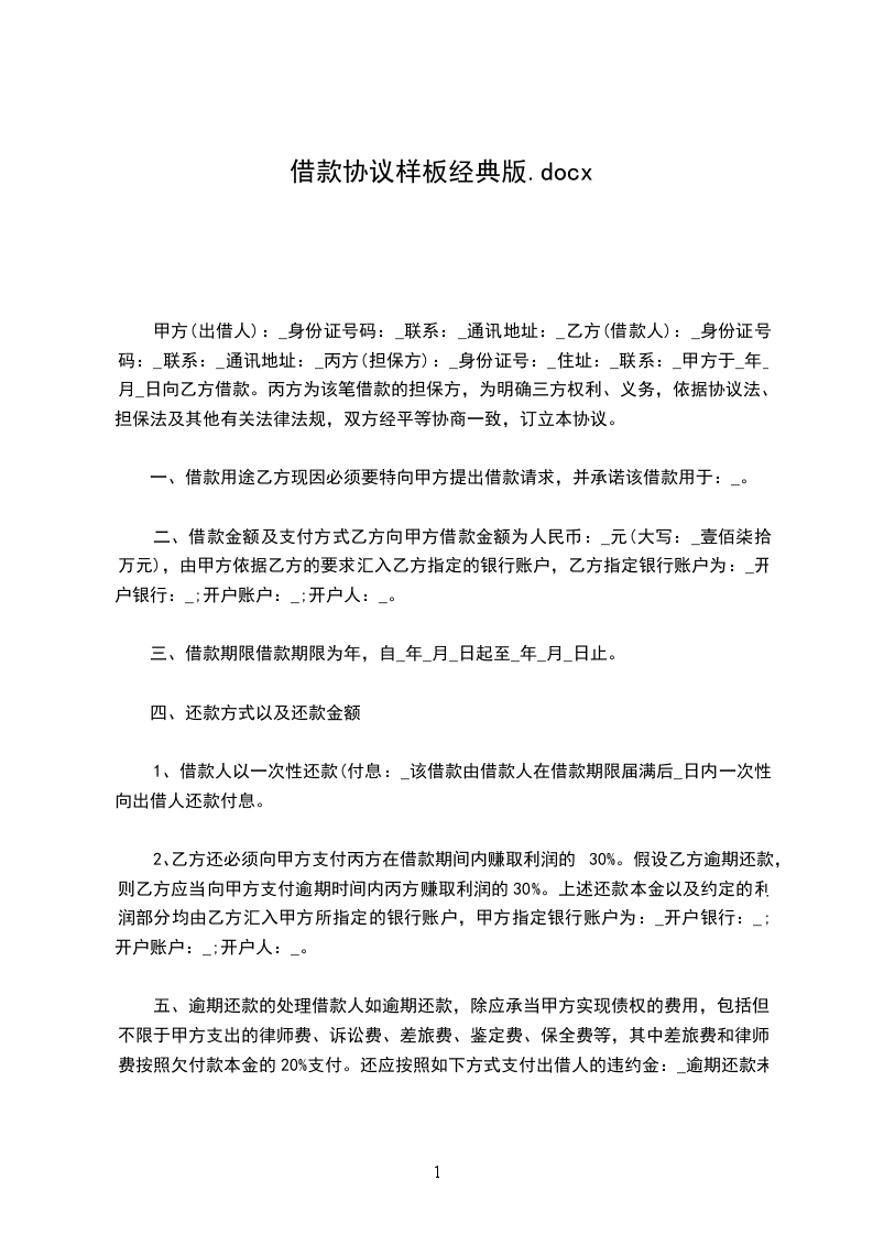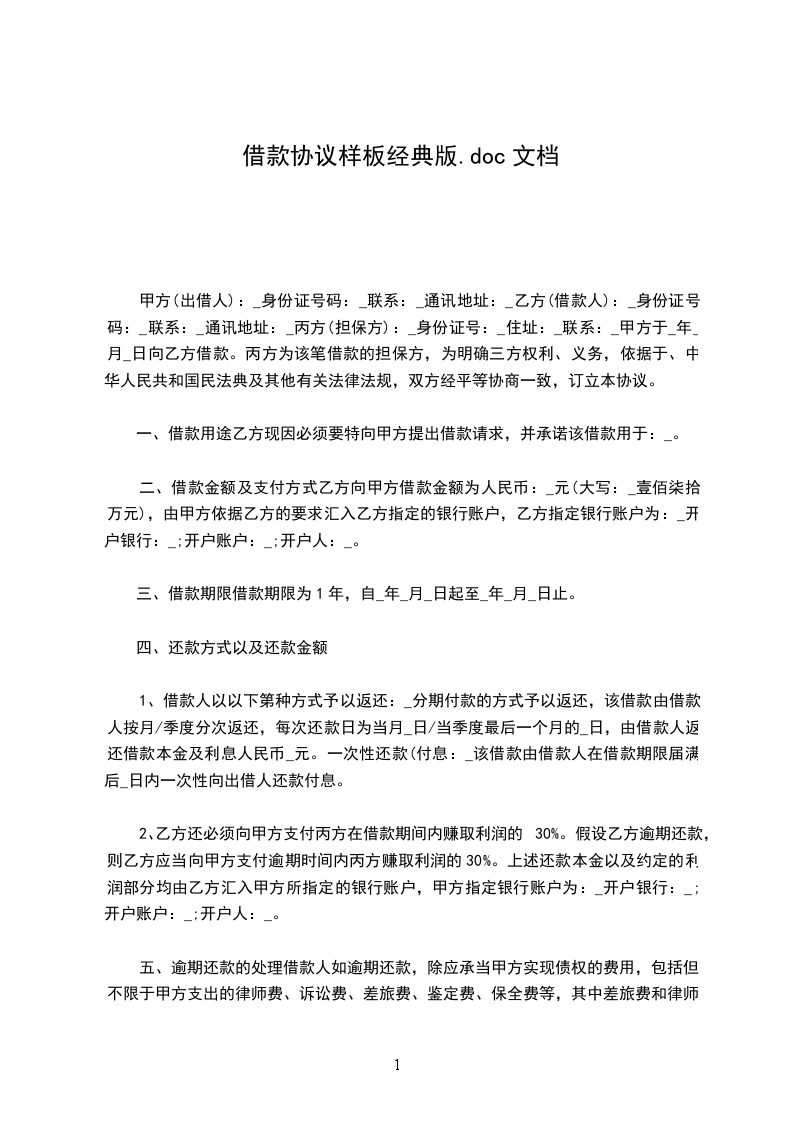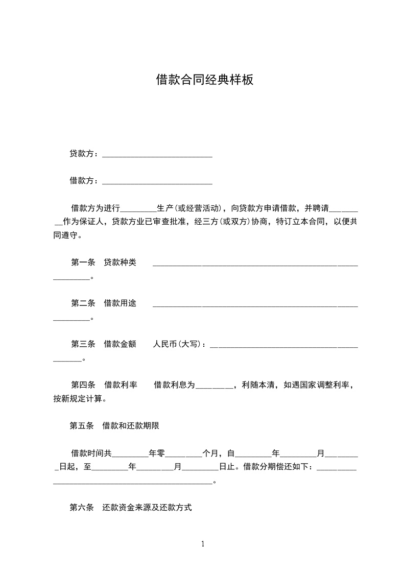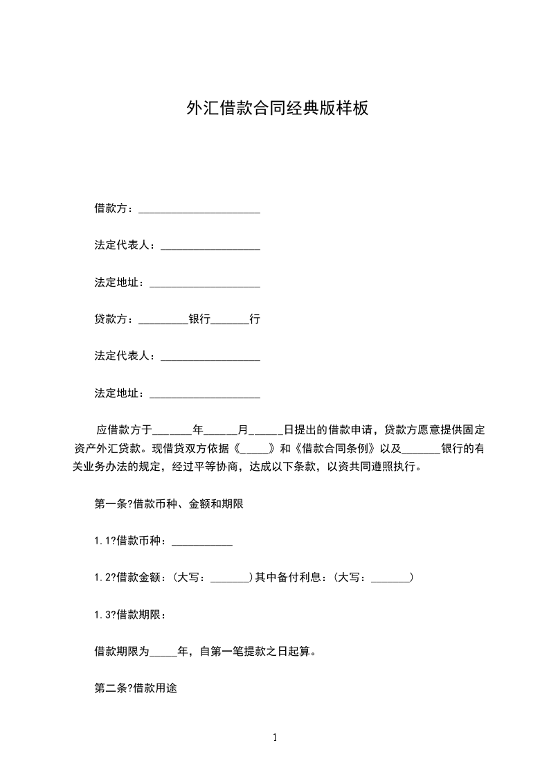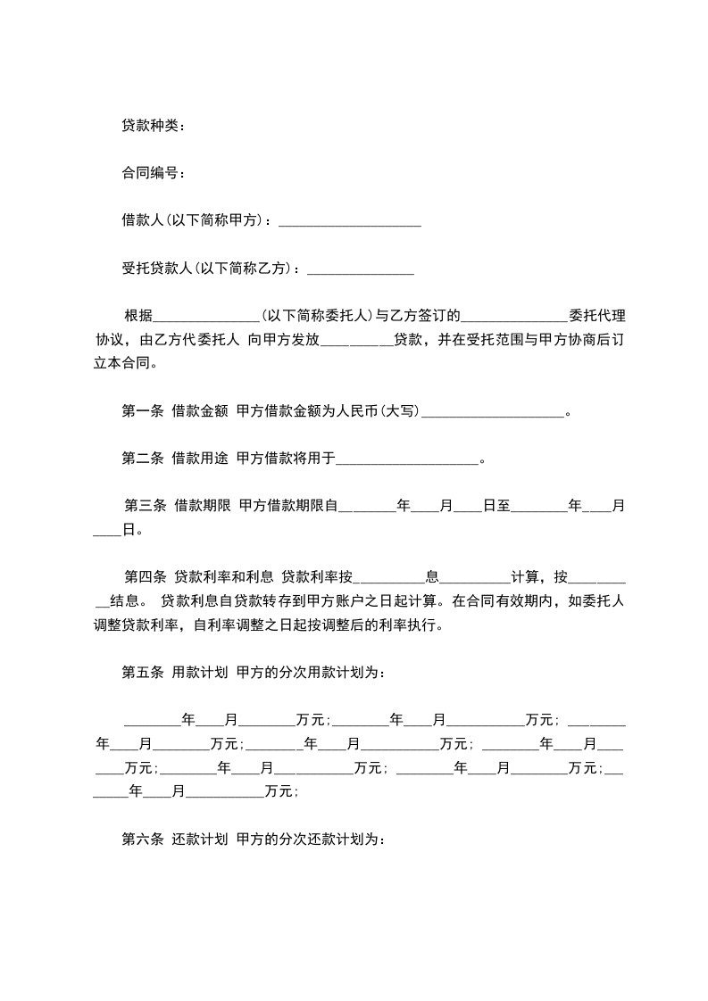 第一条 贷款种类 ___________________________________________________________。