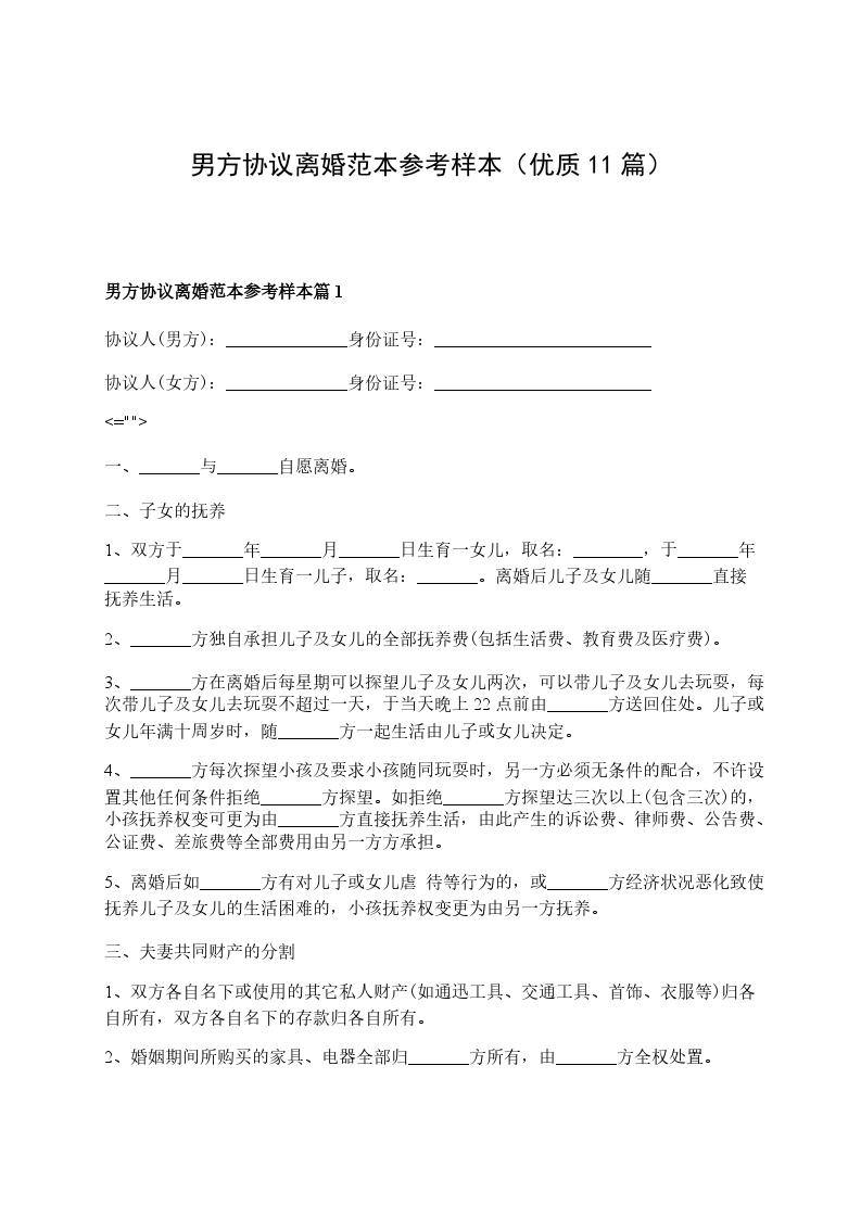 男方协议离婚范本参考样本篇11