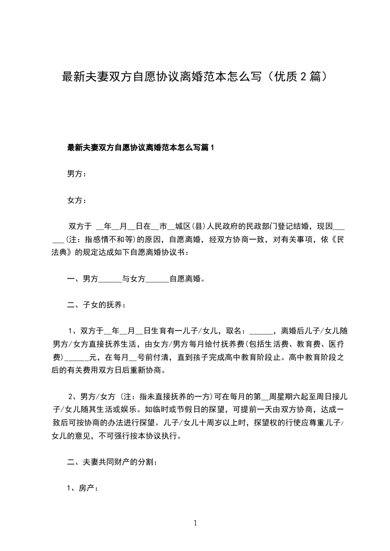 1、______地的1幢住房属双方共同财产,该房屋所有权证编号为__________________,该房屋归女方所有;