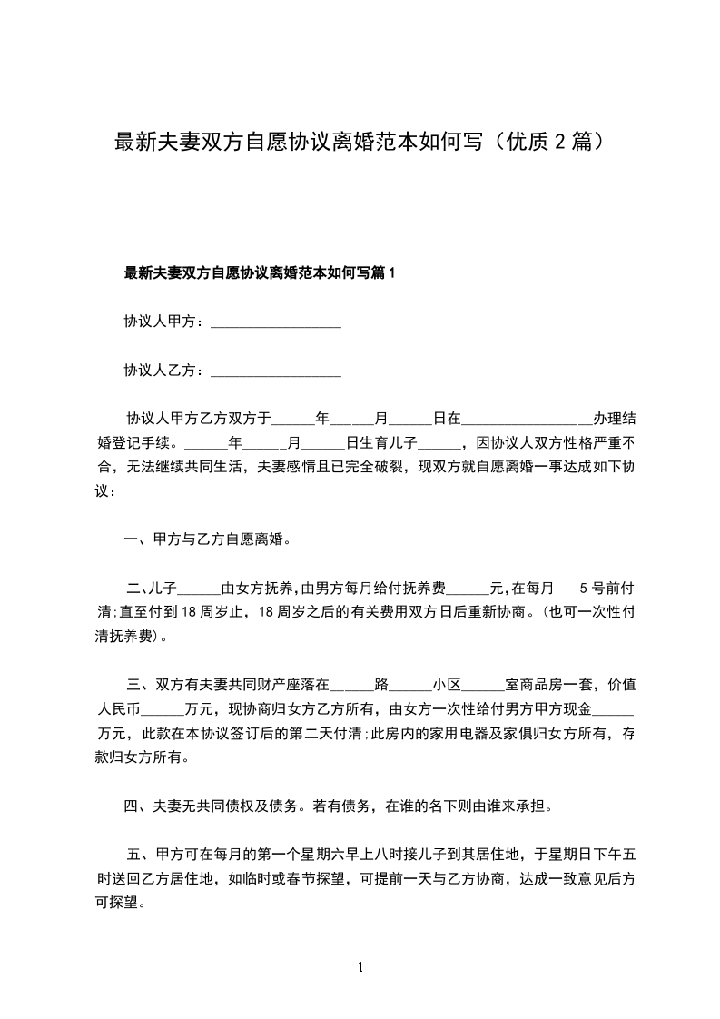 最新夫妻自愿协议离婚书参考样本篇2