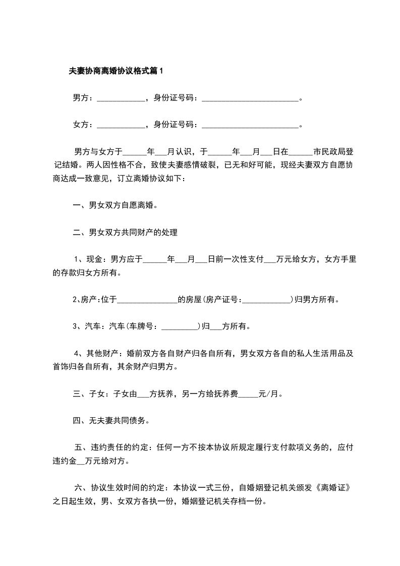 八、本协议一式三份,男、女双方各执一份,婚姻登记机关存档一份。