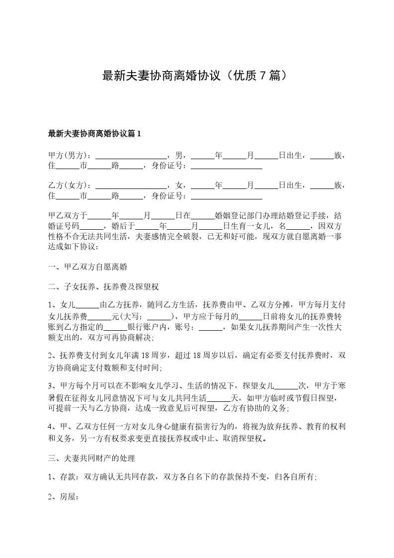 七,本协议书一式三份,甲乙双方各执一份,婚姻登记部门保留一份,在双方签字,并经婚姻登记机关办理相应手续后生效。