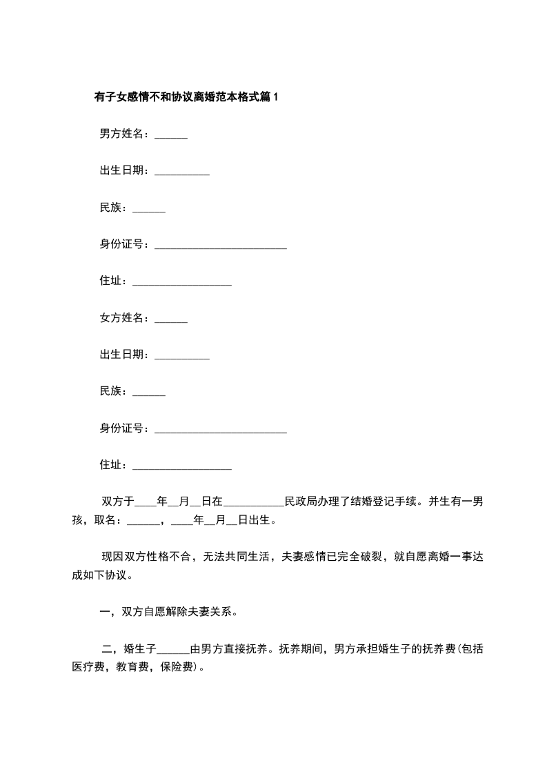 有子女感情不和协议离婚范本如何写篇1