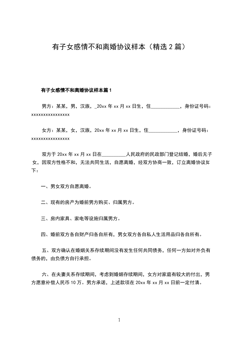 有子女感情不和协议离婚范本如何写篇2