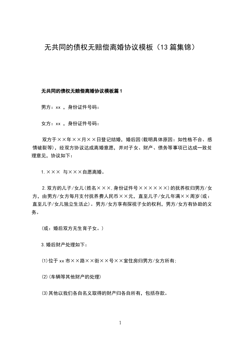 五、双方确认在婚姻关系存续期间没有发生任何共同债务,任何一方如对外负有债务的,由负债方自行承担。