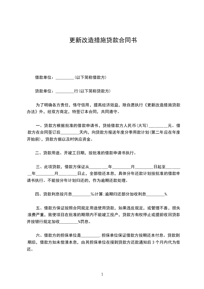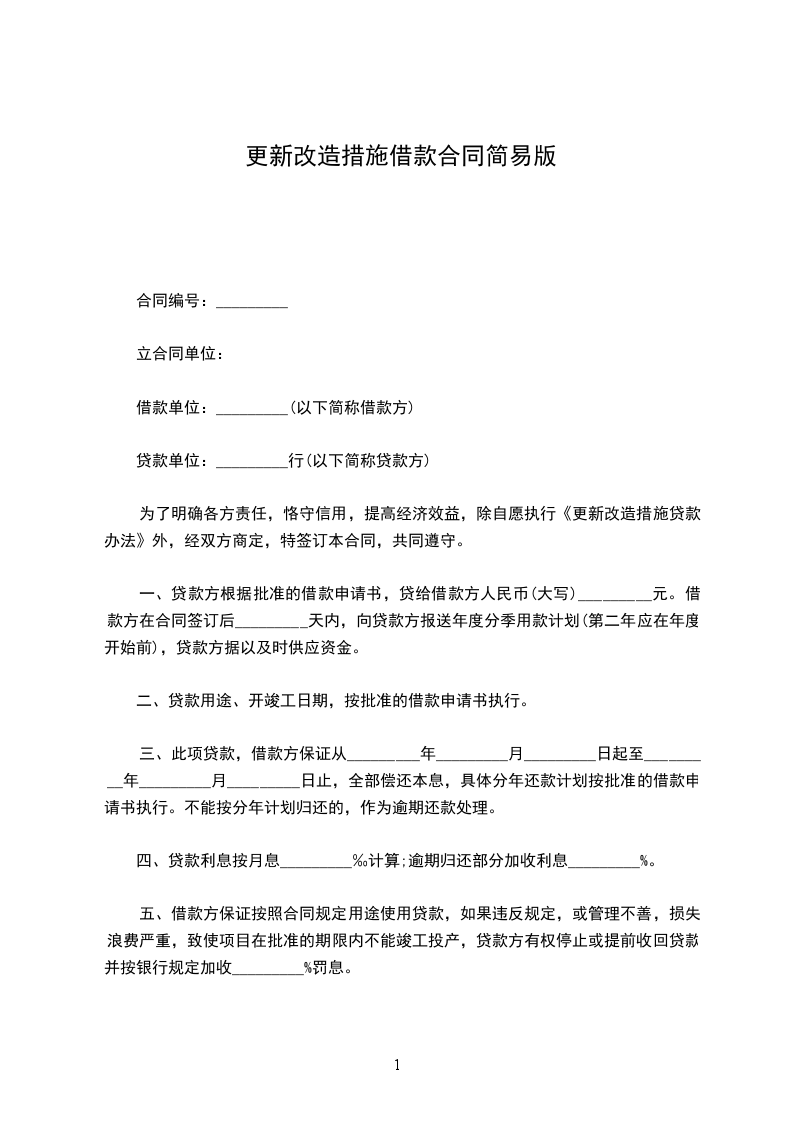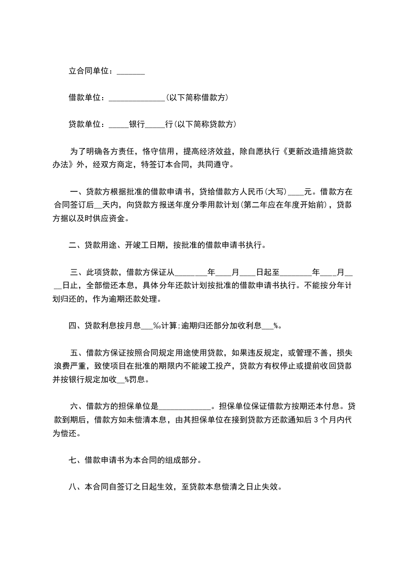为了明确各方责任,恪守信用,提高经济效益,除自愿执行《更新改造措施贷款办法》外,经双方商定,特签订本合同,共同遵守。