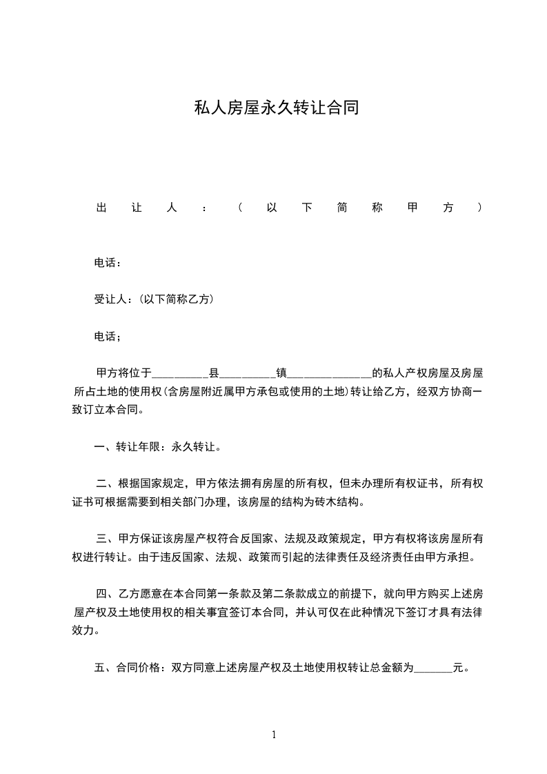 一、甲方自愿将坐落在________________________楼房(_____________________(建筑面积______________平方米)楼房出卖给乙方。
