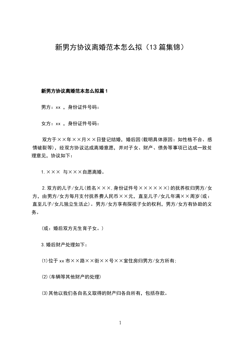 新版男方离婚协议书怎么拟篇1